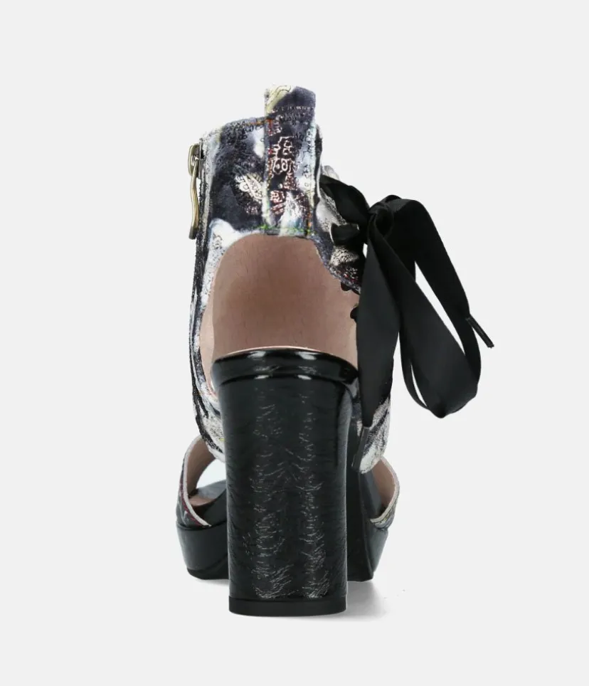 A fabulous stylish block heel with an ornate pattern and dressy silk laces. A perfect style to glam up any outfit for special occasions.