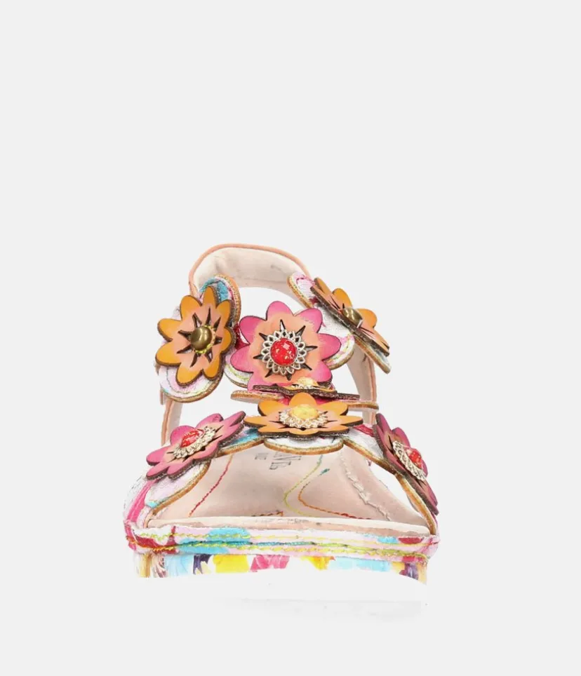 This Beautiful sandal stands out with it’s colourful pattern and the cut out flowers on the upper are Gorgeous. The contoured wedge sole ensures a very comfortable fit. Add this style to your wardrobe this season to add a splash of colour to your outfits.