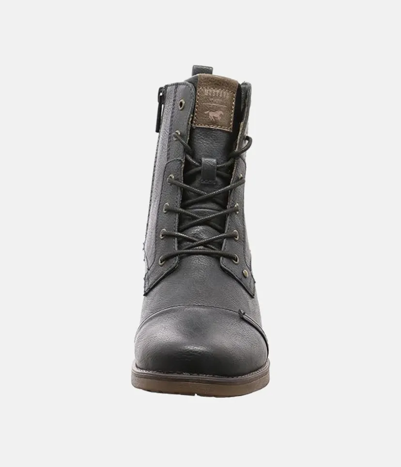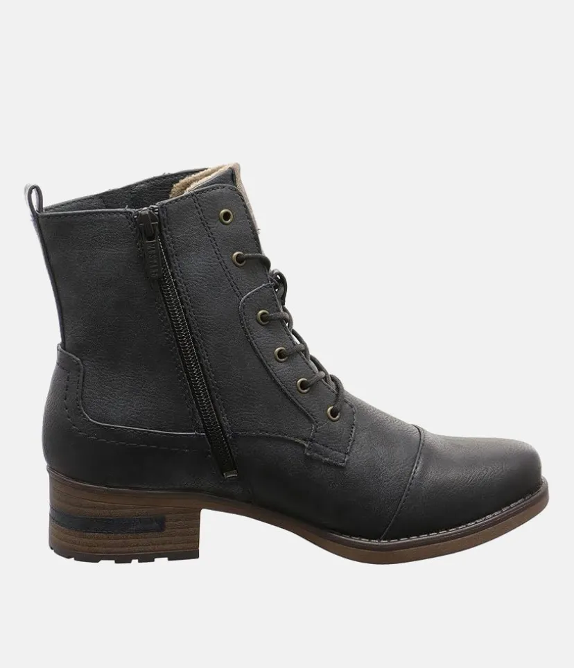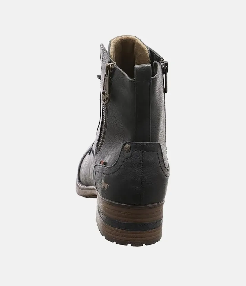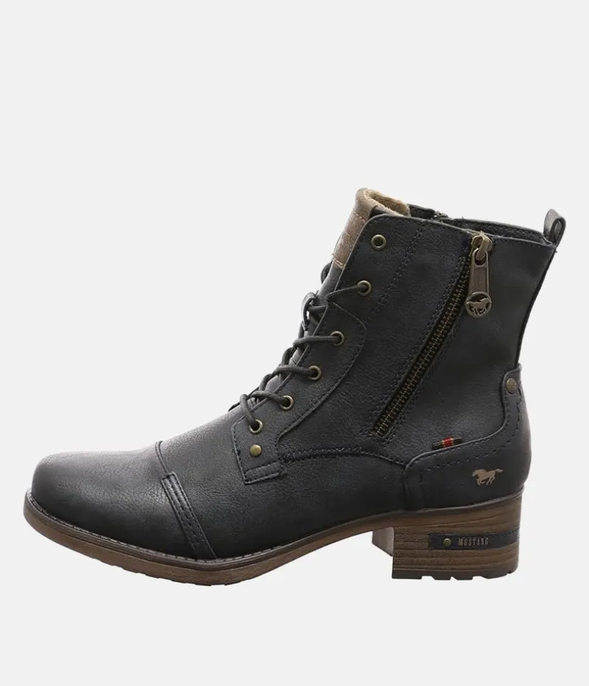 This is a versatile and stylish boot from Mustang with combination gold side zip. Perfect to pair with your favourite Jeans, or dresses and skirts.