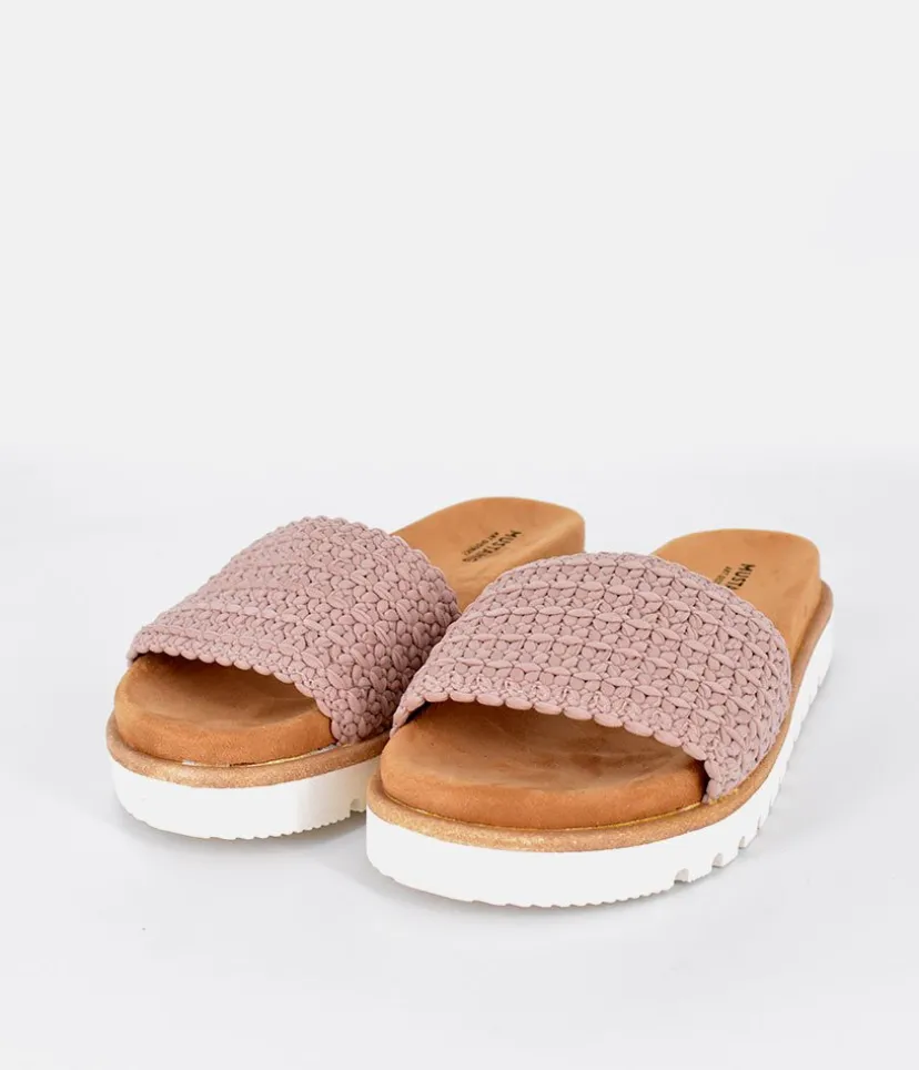 A Simple fashionable slip on sandal from Cosmos Comfort by Mustang. The cork insole is super breathable and supports the natural movement of the foot and improves posture and the adjustable buckle ensures a good fit.