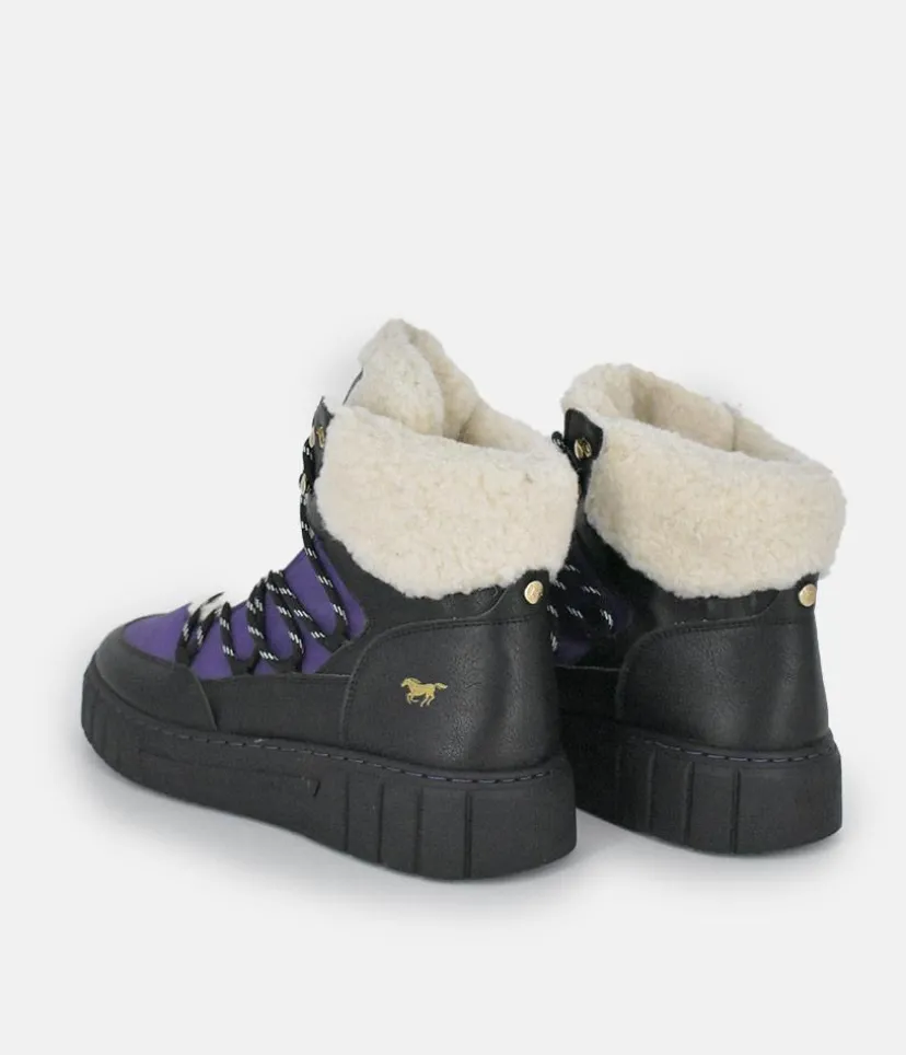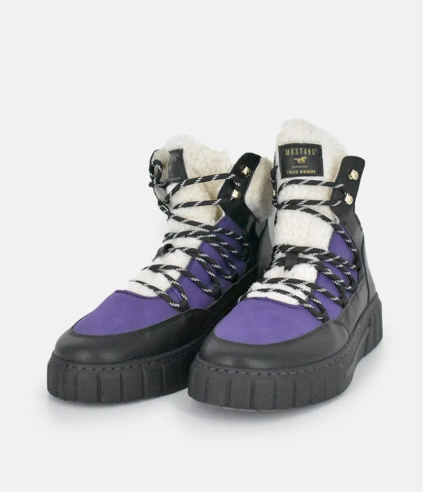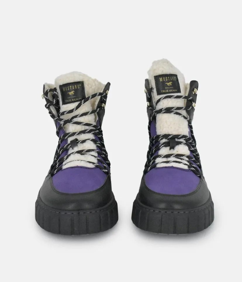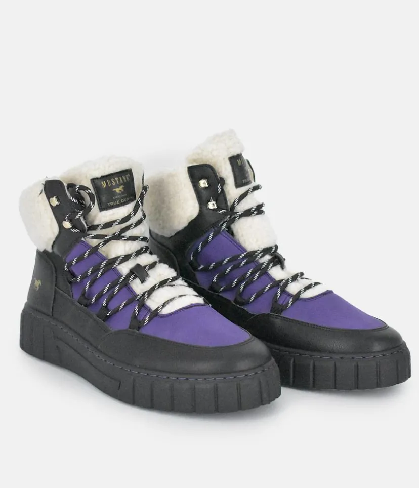 These New Style ankle boots from Mustang are a super choice for the colder months. Add a pop of colour to your wardrobe with this stylish looking boot with cosy fur lining, and adjustable laces. These boots stand upon a chunky non slip sole that provides a practical grip and traction with every step.