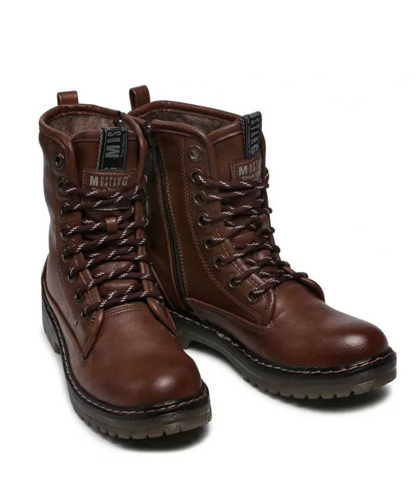 A Trendy lace-up boot from Mustang! Featuring contrasting two tone lacing for a variable fit and a side zip for easy on and off. Profiled outsole and soft textile inner lining for a comfortable fit.