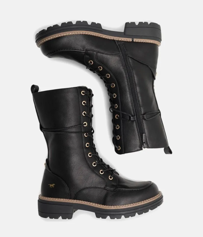 These Stylish boots by Mustang are a great fashion staple for your wardrobe. The soft interior is super cosy and the side zipper is practical for easy on and off. The lacing also allows for anjustable fit . A trendy companion that never goes out of style and will work just as well with dresses as they do with jeans.