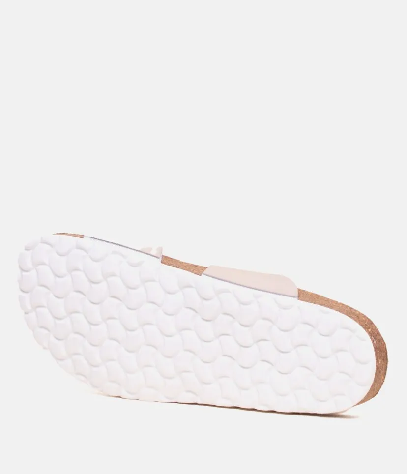 A Simple fashionable slip on sandal from Cosmos Comfort by Mustang. The cork insole is super breathable and supports the natural movement of the foot and improves posture and the adjustable buckle ensures a good fit.