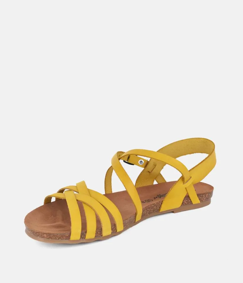 A Simple fashionable sandal from Cosmos Comfort by Mustang. The cork insole is super breathable and supports the natural movement of the foot and improves posture and the adjustable buckle ensures a good fit.