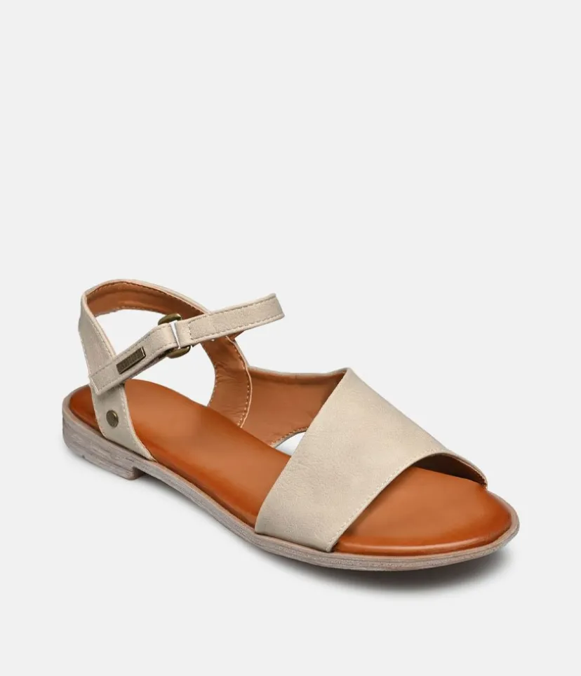 A Simple classic sandal from Mustang. The leather covered footbed supports the natural movement of the foot and improves posture . The soft sole cushions impact and relieves spine and joints.