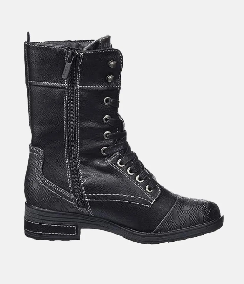 These Lace Up boots by Mustang are a great fashion staple for your wardrobe. The soft interior is super cosy and the side zipper is practical for easy on and off. A trendy companion that never goes out of style and will work just as well with dresses as they do with jeans.