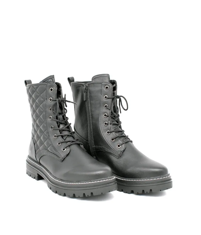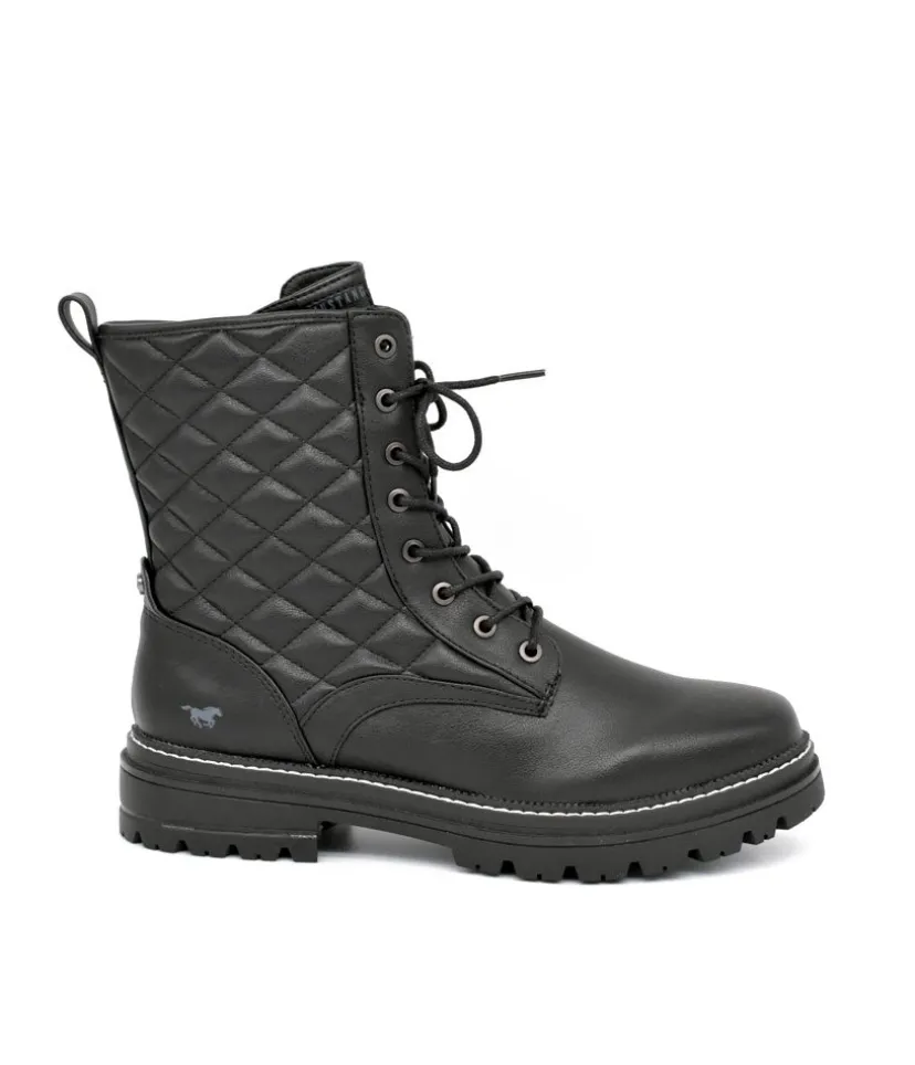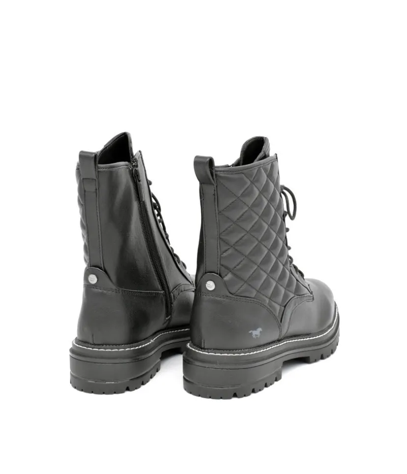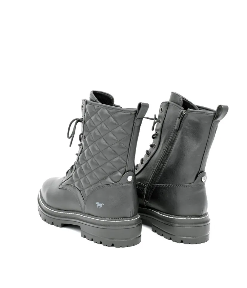 This Black Ankle Boot from Mustang with quilted finish on the side will be your go to style for this season. The warm lining makes them super snug, uppers made of Leather, and side zip for easy on and off.
