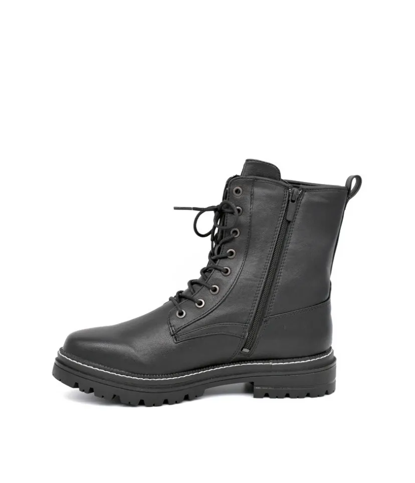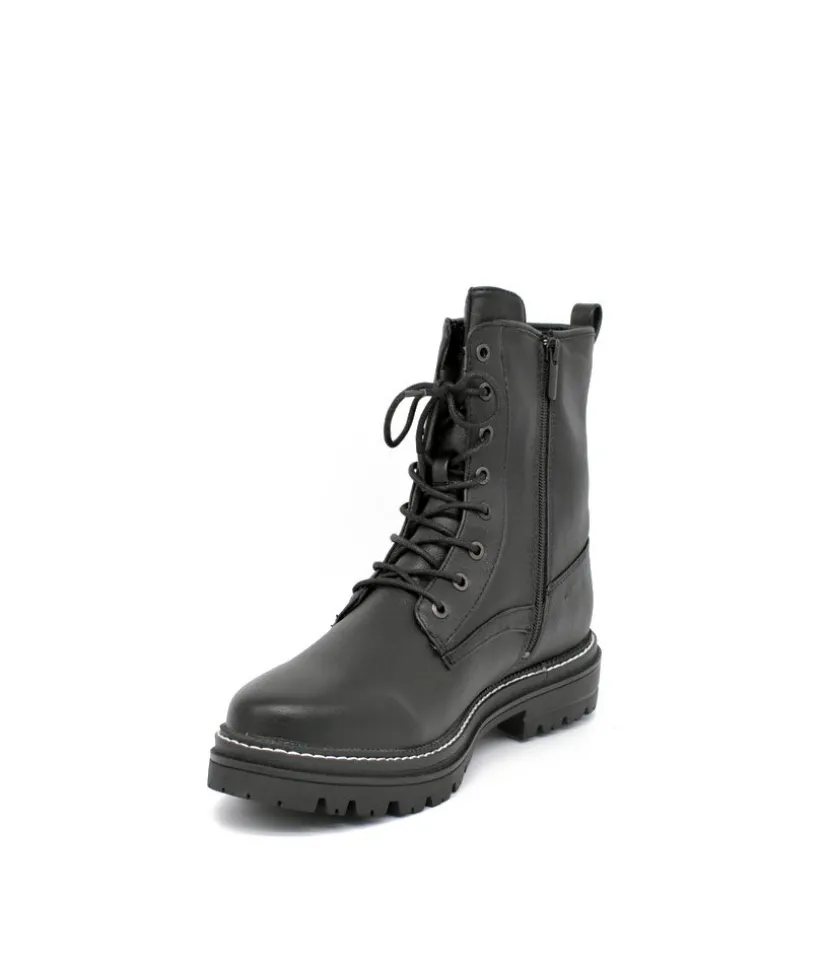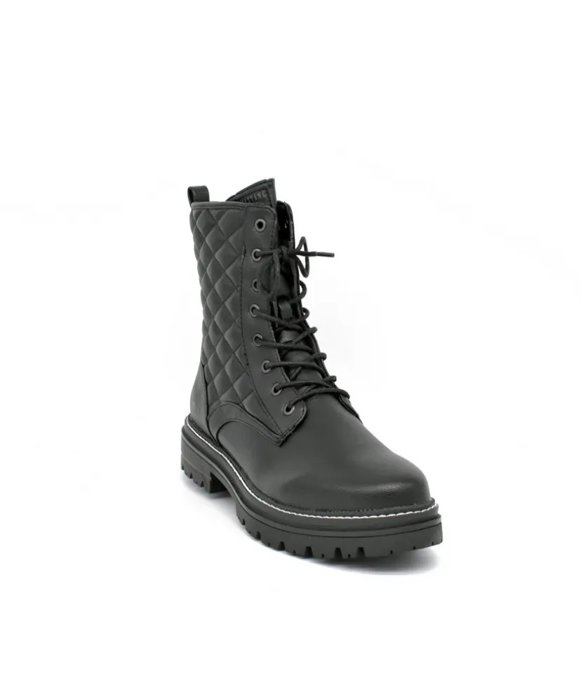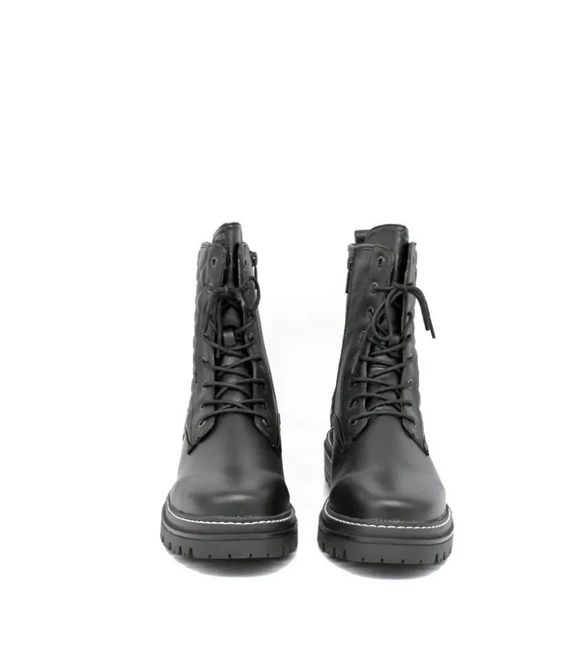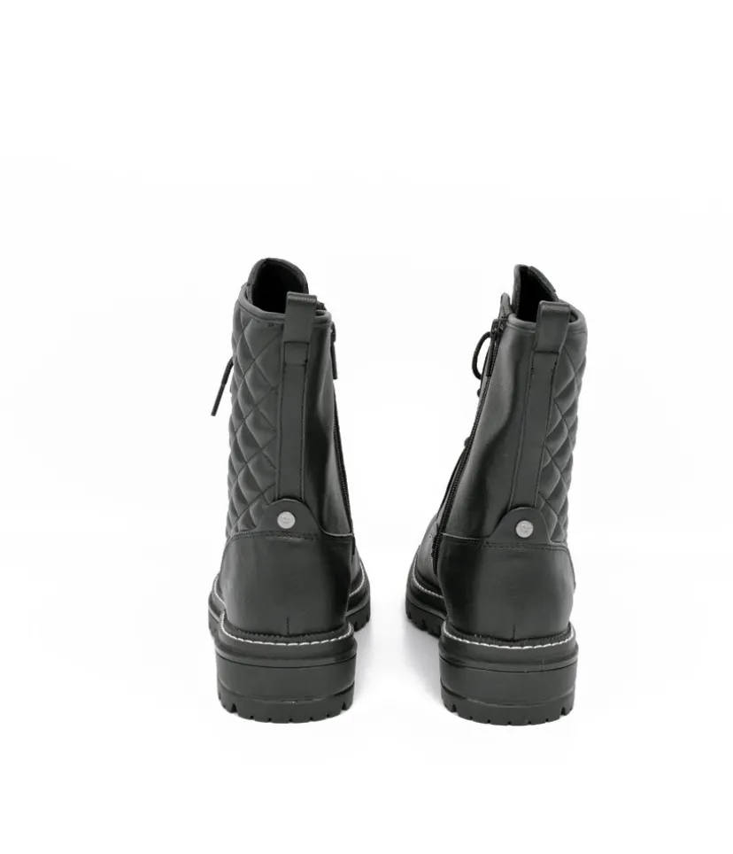 This Black Ankle Boot from Mustang with quilted finish on the side will be your go to style for this season. The warm lining makes them super snug, uppers made of Leather, and side zip for easy on and off.
