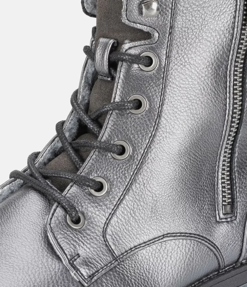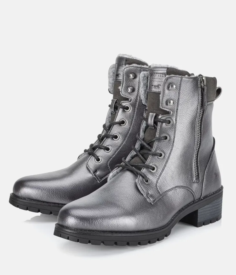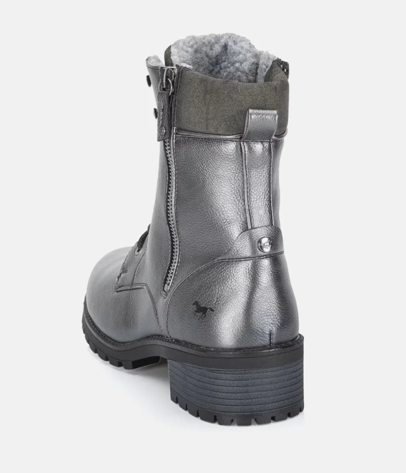 These Stylish boots by Mustang are a great fashionable choice for your wardrobe. The soft wool interior is super cosy and the side zipper is practical for easy on and off. The additional decorative side zipper really give the boot a fab look and the soft ankle cuff ensures a comfortable fit. A trendy companion that never goes out of style and will work just as well with dresses as they do with jeans.
