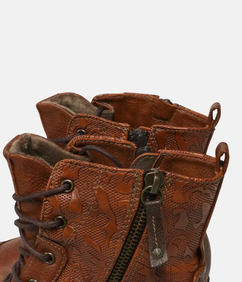This is a versatile and stylish boot from Mustang with side zip. Featuring a pretty pattern on the upper and decorative lacing; Perfect to pair with your favourite Jeans, or dresses and skirts.