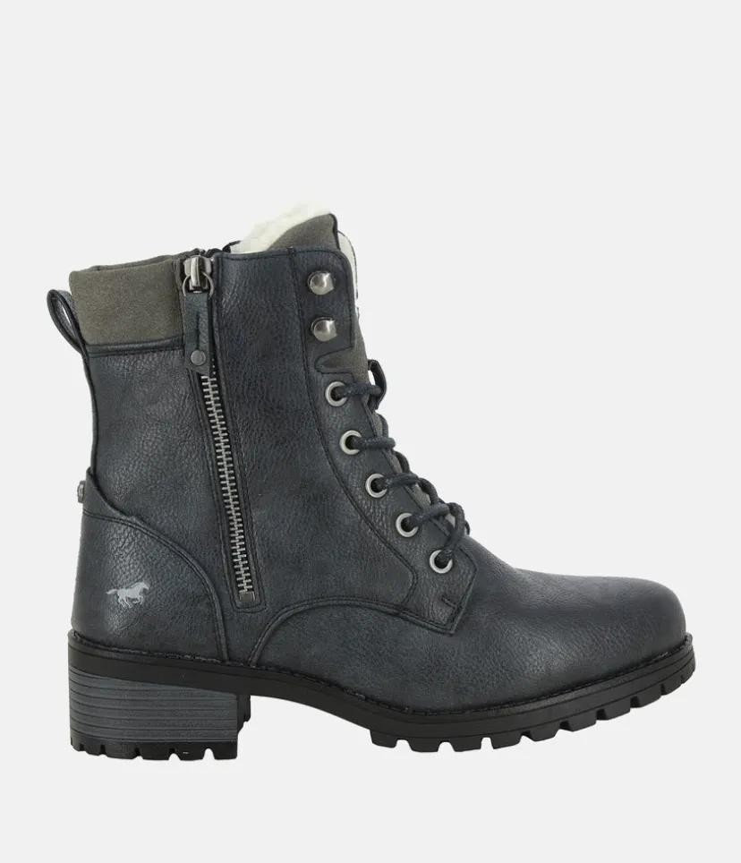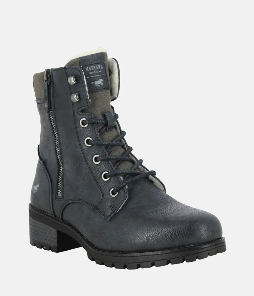 These Stylish boots by Mustang are a great fashionable choice for your wardrobe. The soft wool interior is super cosy and the side zipper is practical for easy on and off. The additional decorative side zipper really give the boot a fab look and the soft ankle cuff ensures a comfortable fit. A trendy companion that never goes out of style and will work just as well with dresses as they do with jeans.
