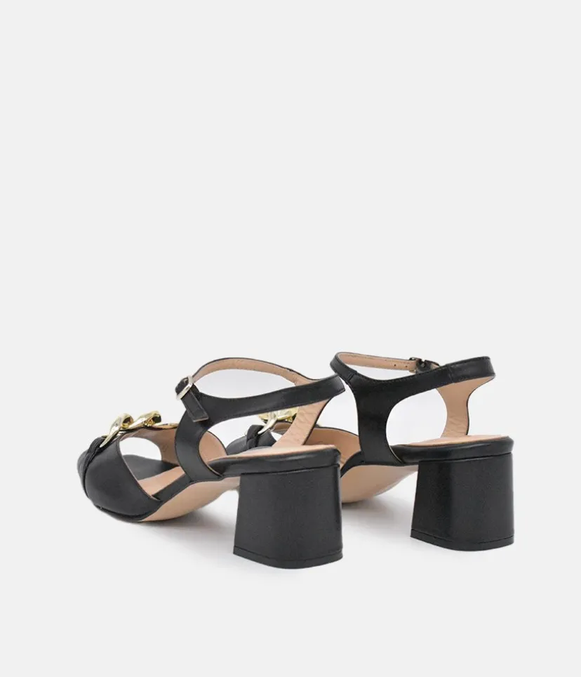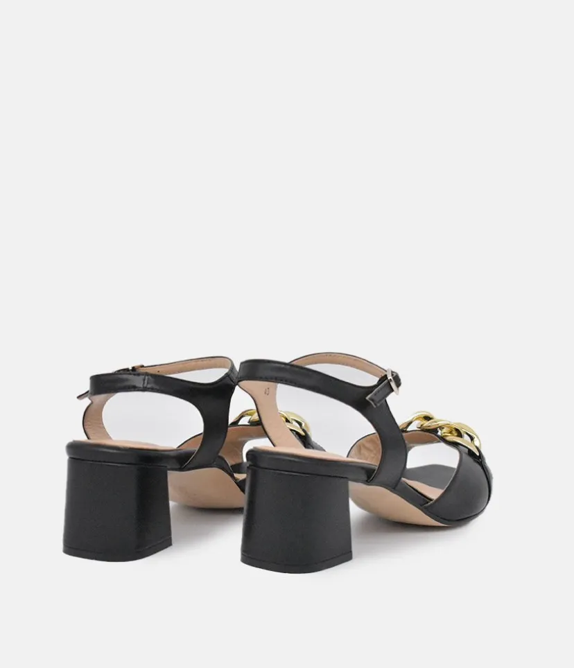 This Classic Sandal with a block heel is a delight to the eye with its combination of leather chain embellishment on the upper. This is a super versatile sandal and is an ideal choice for any occasion.