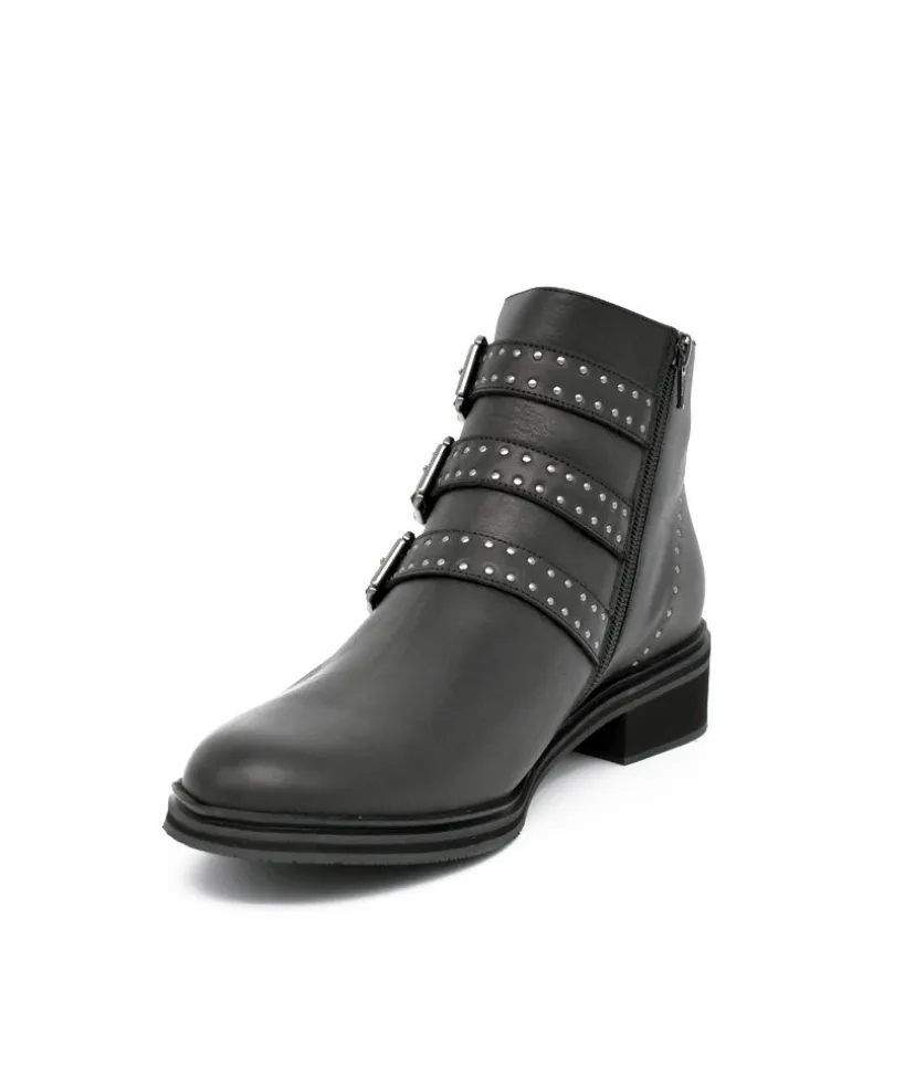 A Deluxe Premium Leather Ankle Boot from PieSanto that provides a sophisticated look with it’s buckles and stud detailing on the upper. Featuring a super soft insole that allows you to wear this style all day without foot pain. This style is designed to provide maximum comfort for your feet. Handcrafted by PieSanto in Spain with sustainable manufacturing processes. A Versatile and Classic Style for your new season wardrobe.
