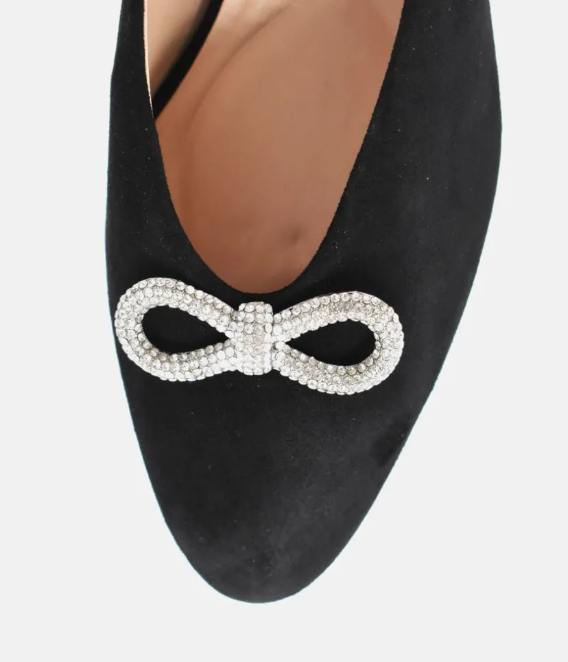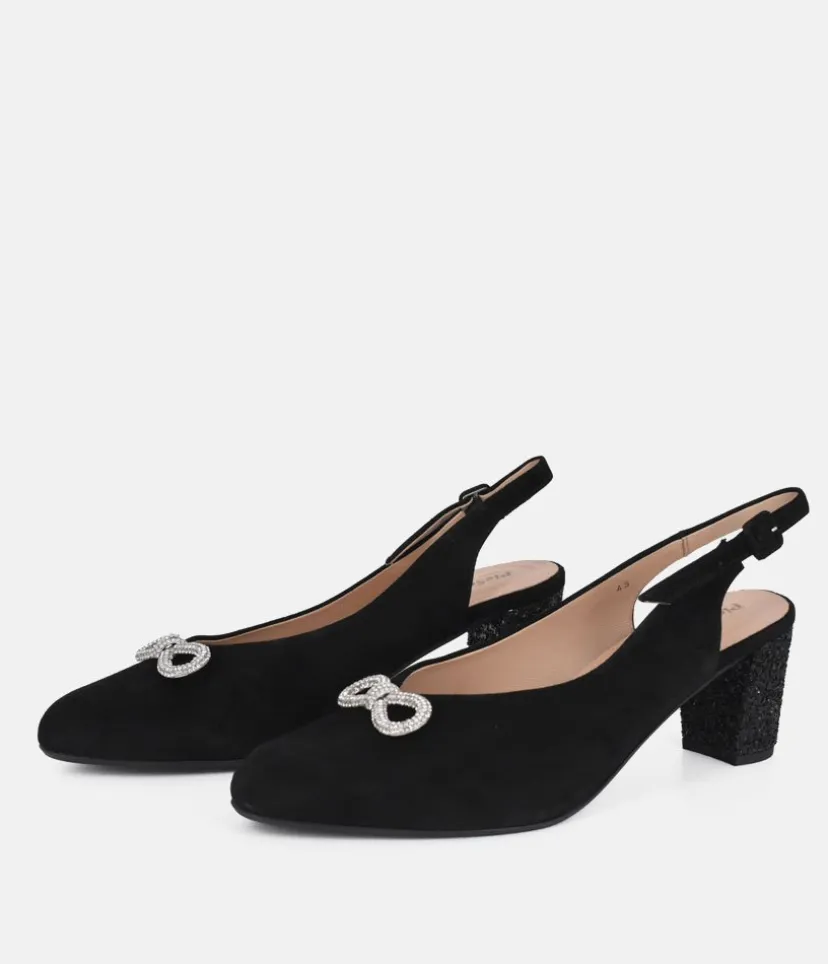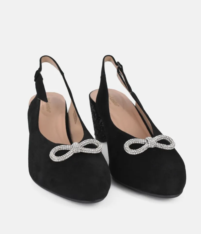 A Plush Suede Heel from PieSanto that provides a sophisticated look. This style is finished to perfection with its gorgeous decorative bow detail and crystal encrusted block heel. Handcrafted by PieSanto in Spain with sustainable manufacturing processes.