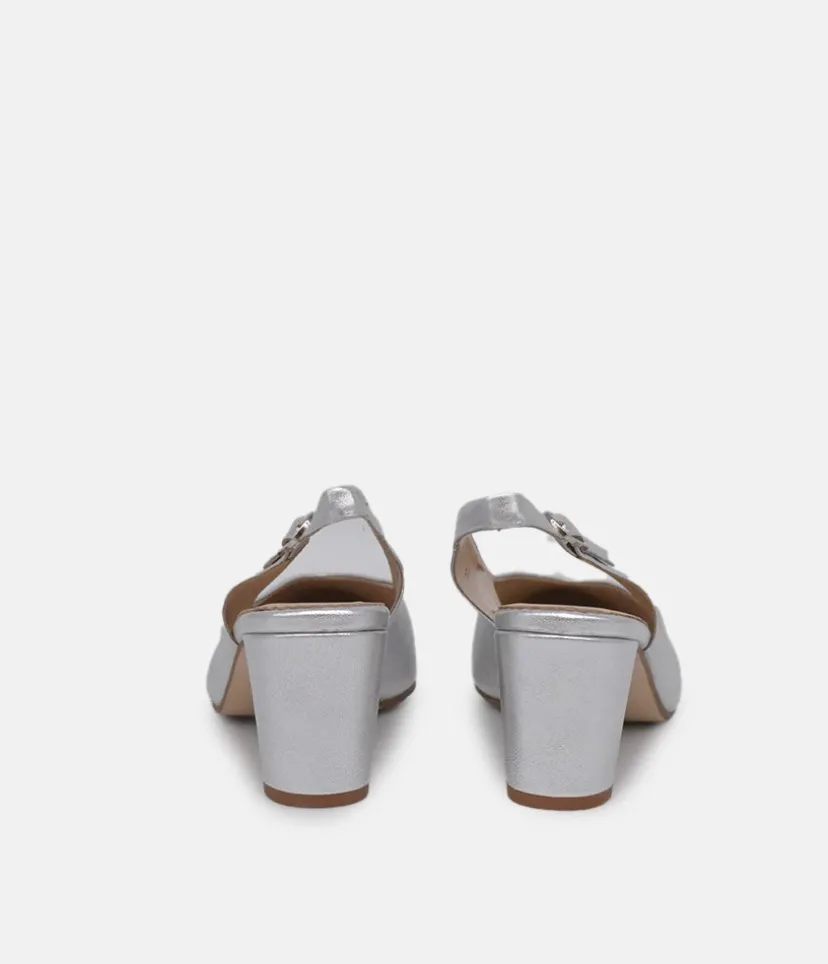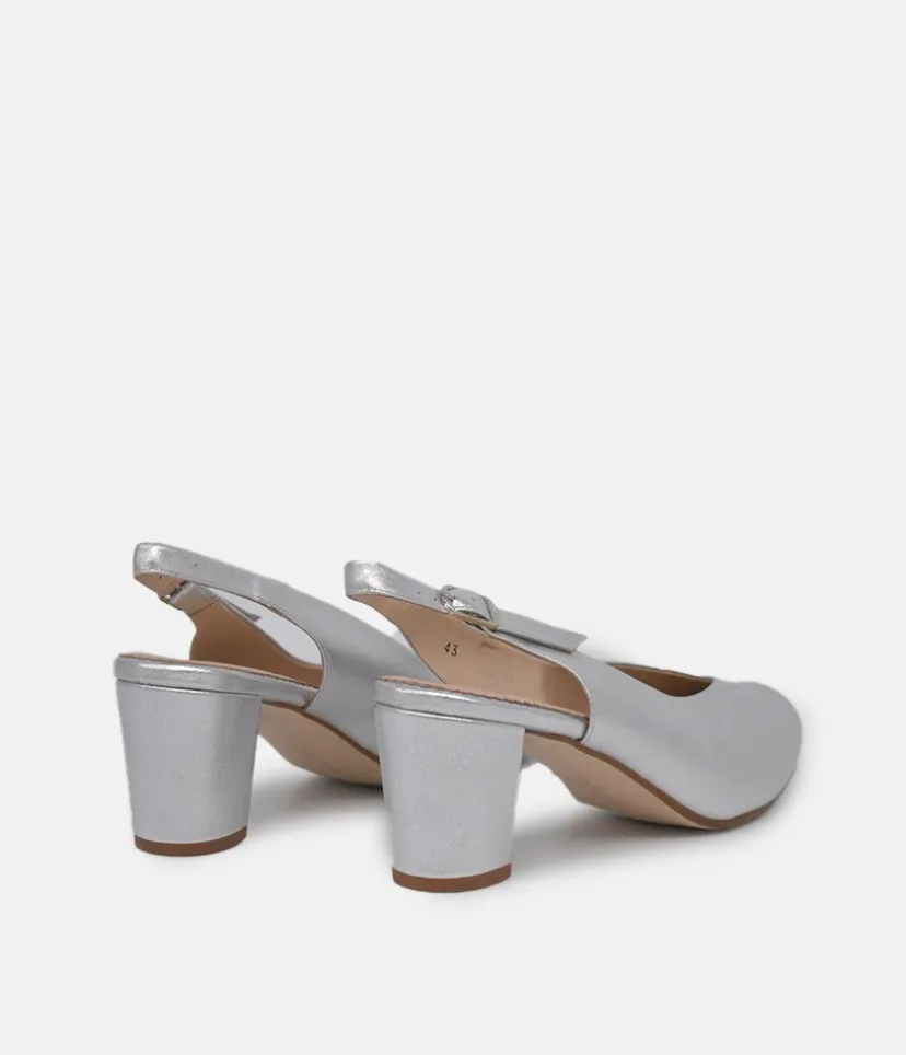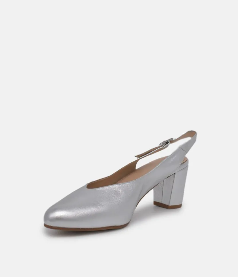 This Slingback from Piesanto is a super stylish choice. A classic style with a block heel is a delight to the eye with its supple leather upper and striking Silver colour. This is a simple and elegant choice to pair with many ensembles.