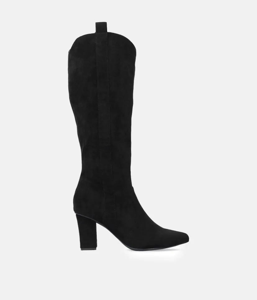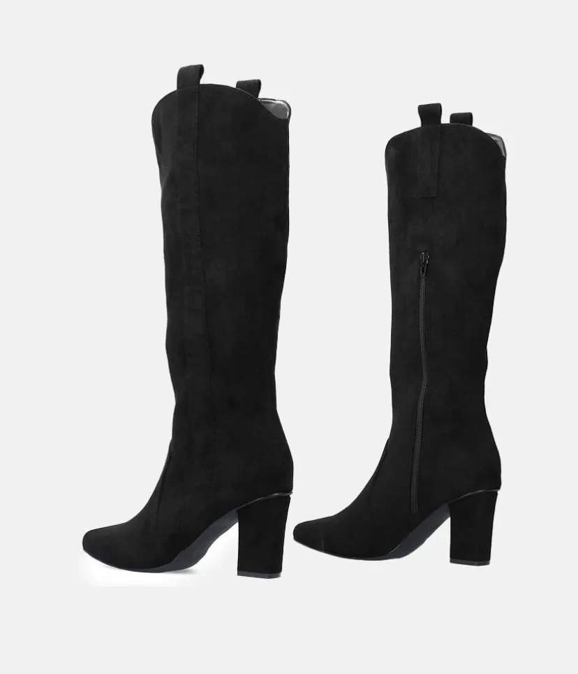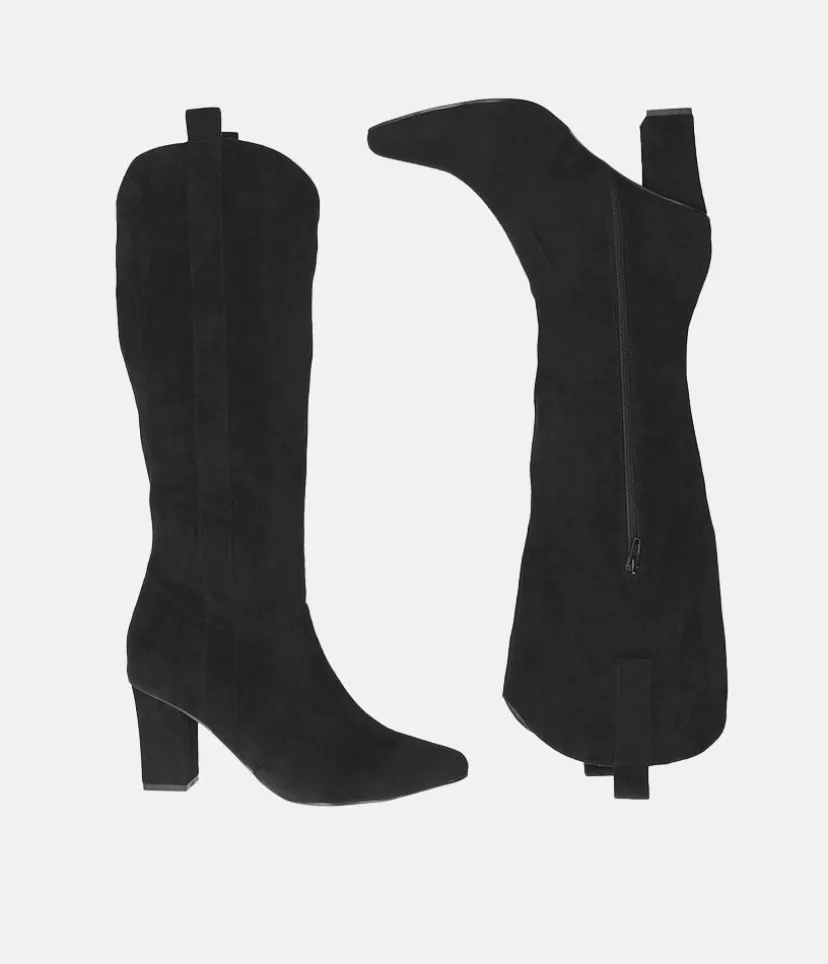 These boots have a western-inspired design, with block heels, and pointed toes. Pair with a mini dress for a perfect boho look.