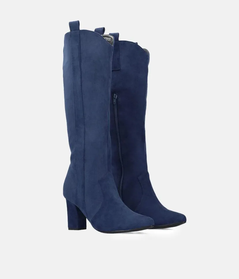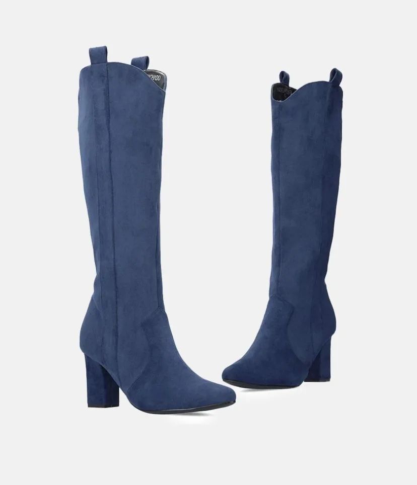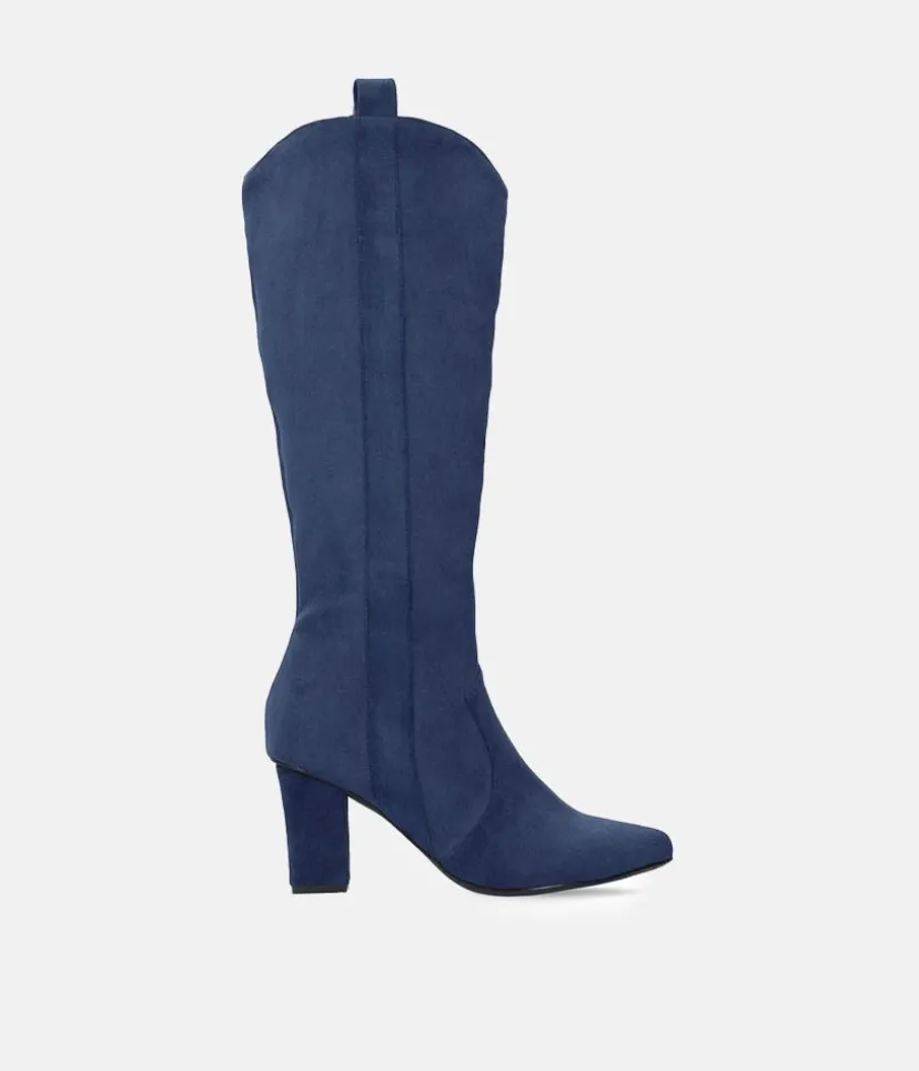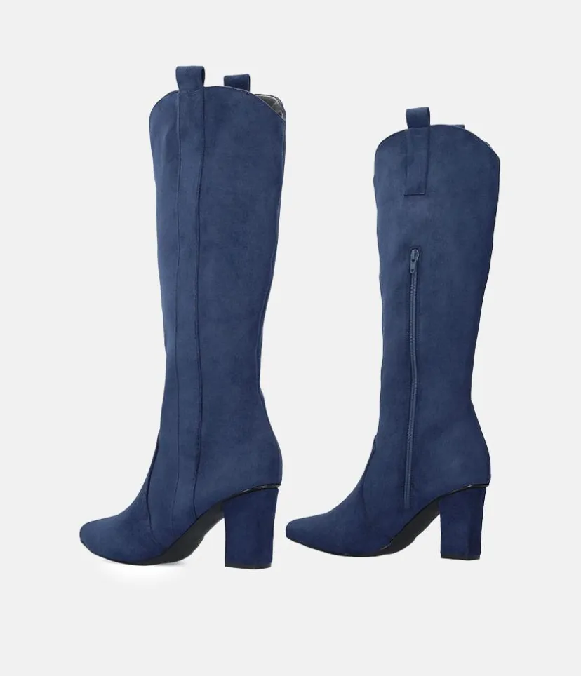Plush Navy Suede Cowboy Style Long Boots
