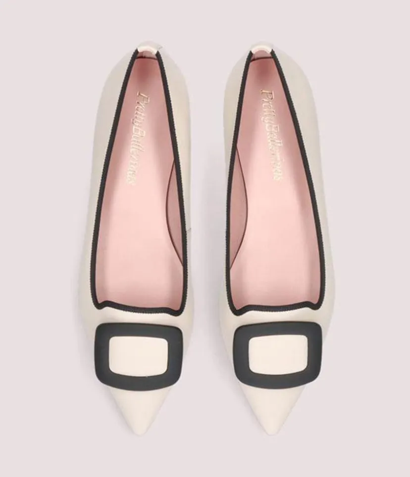 These Sophisticated Pointy Toe Flats in contrasting Black and White with a square embellishment on the vamp, with a flexible undersole and cushioned insole making them super comfortable to wear.