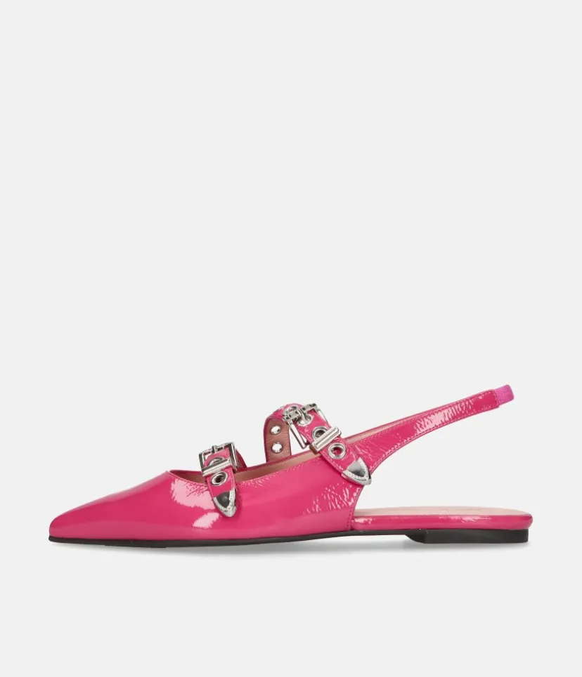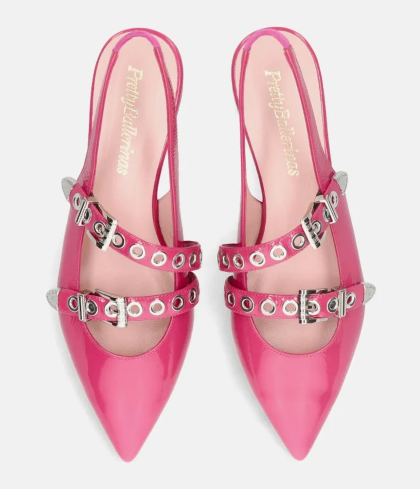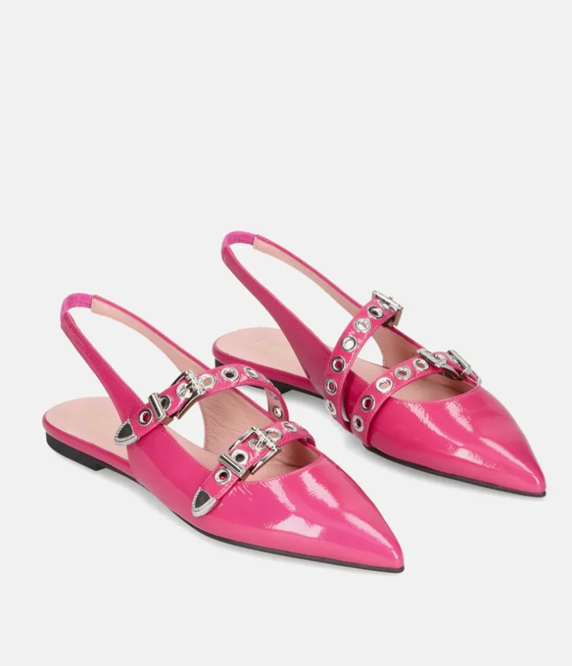 These Leather Pointy Toe Ballerinas with a sling back strap are so stylish, with a flexible undersole and cushioned insole making them super comfortable to wear. This style features two contrasting straps with metal eyelet detailing. Perfect to add some Wow factor to your outfit for parties and special occasions.