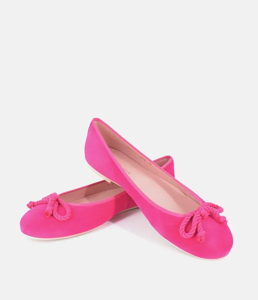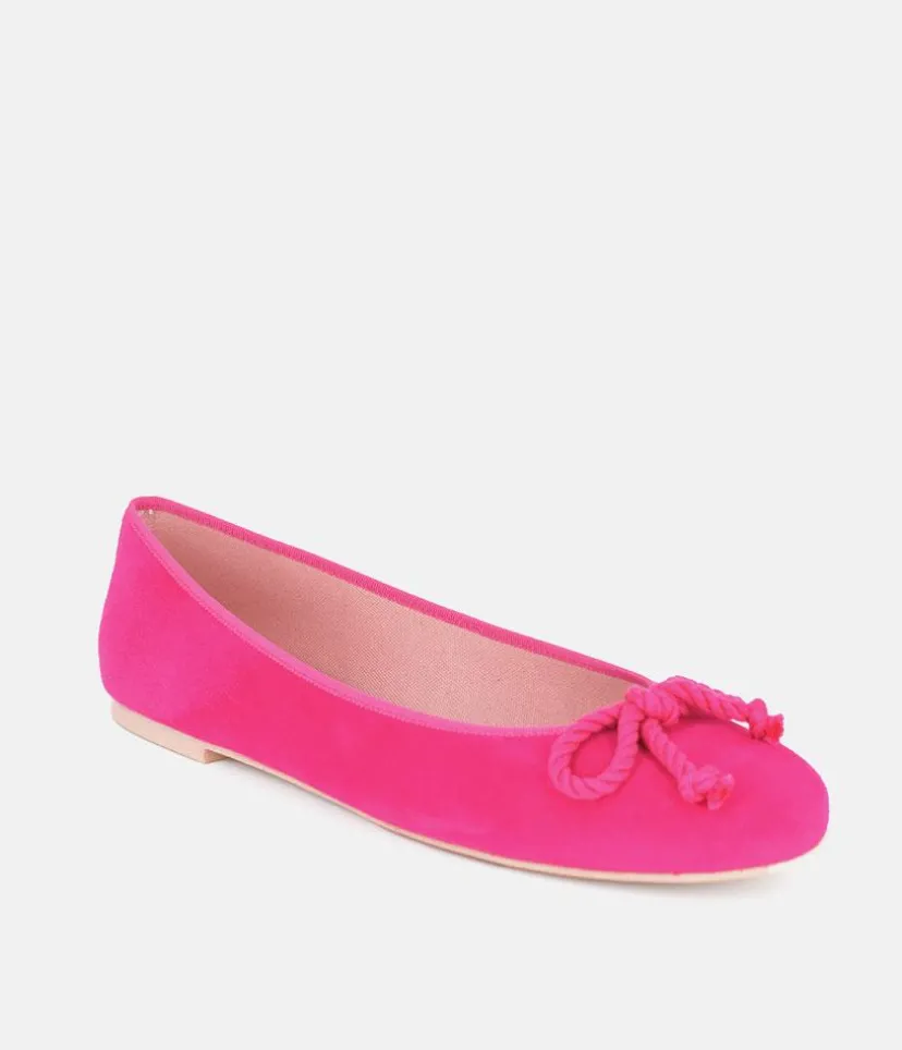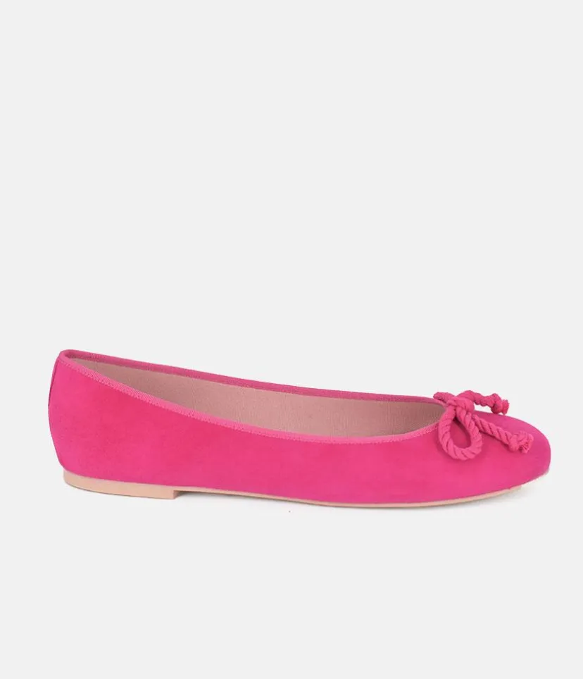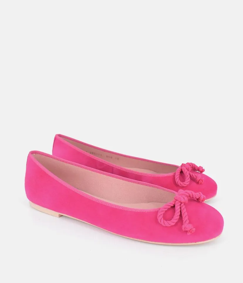 A Classic Pretty Ballerina style in a soft Suede leather and finished to perfection with a delicate rope-bow and trim detail. This classic style has a 0.5 inch heel with a rubber sole for flexible support and comfort.