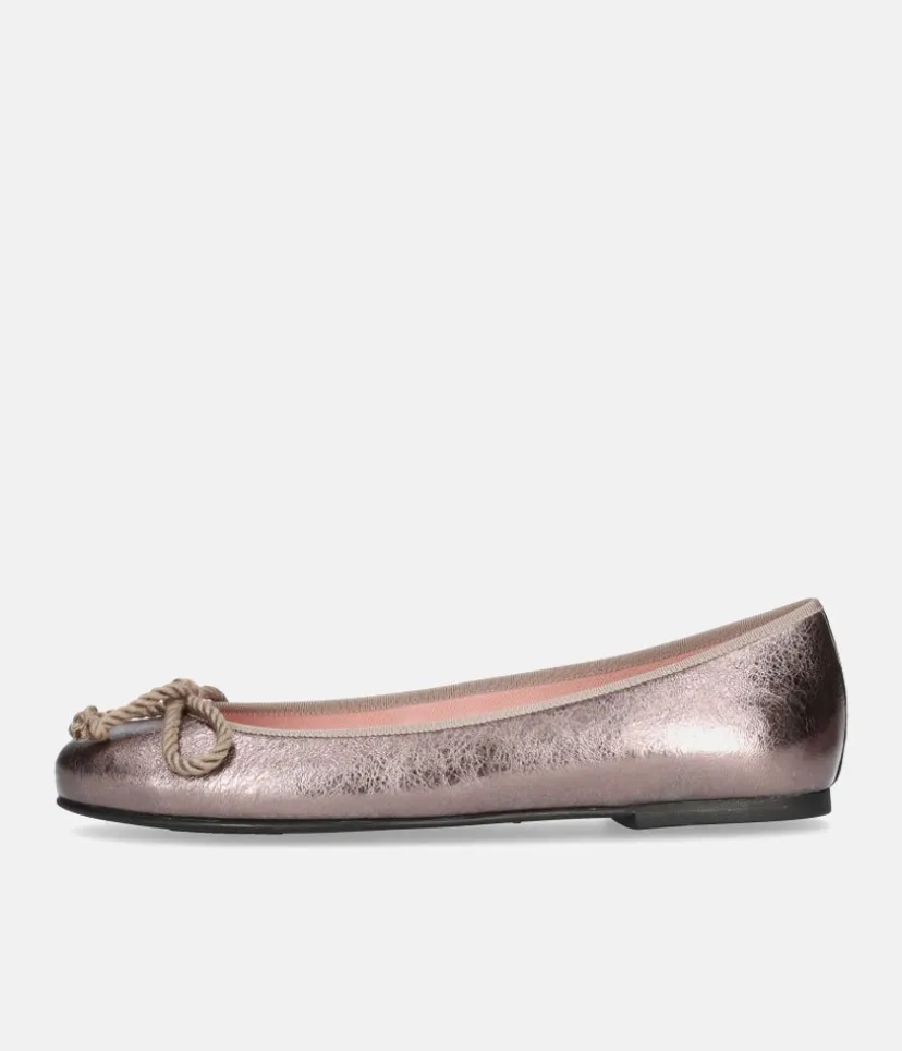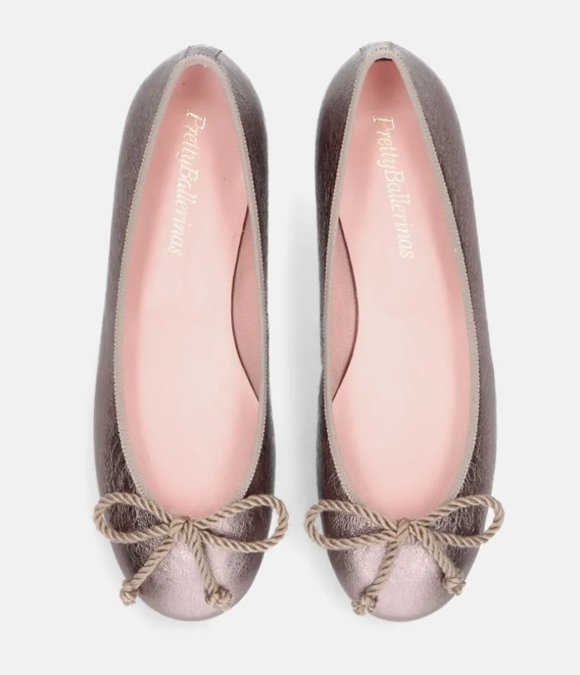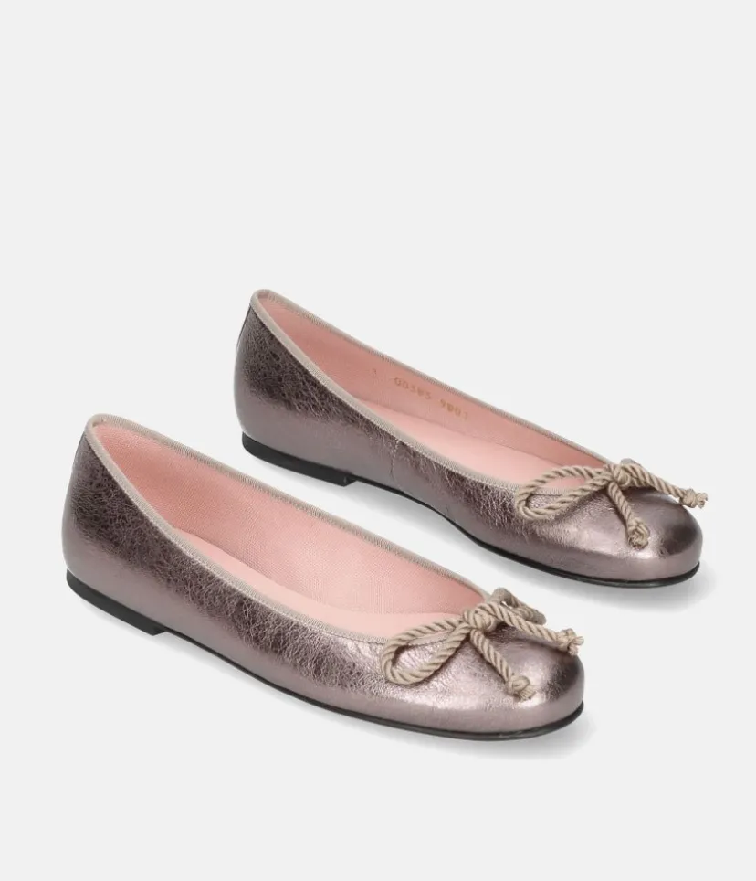 A Stylish Pretty Ballerina style in Metallic Bronze made in a soft leather and finished to perfection with a delicate bow. This classic style has a 0.5 inch heel with a rubber sole for flexible support and comfort.