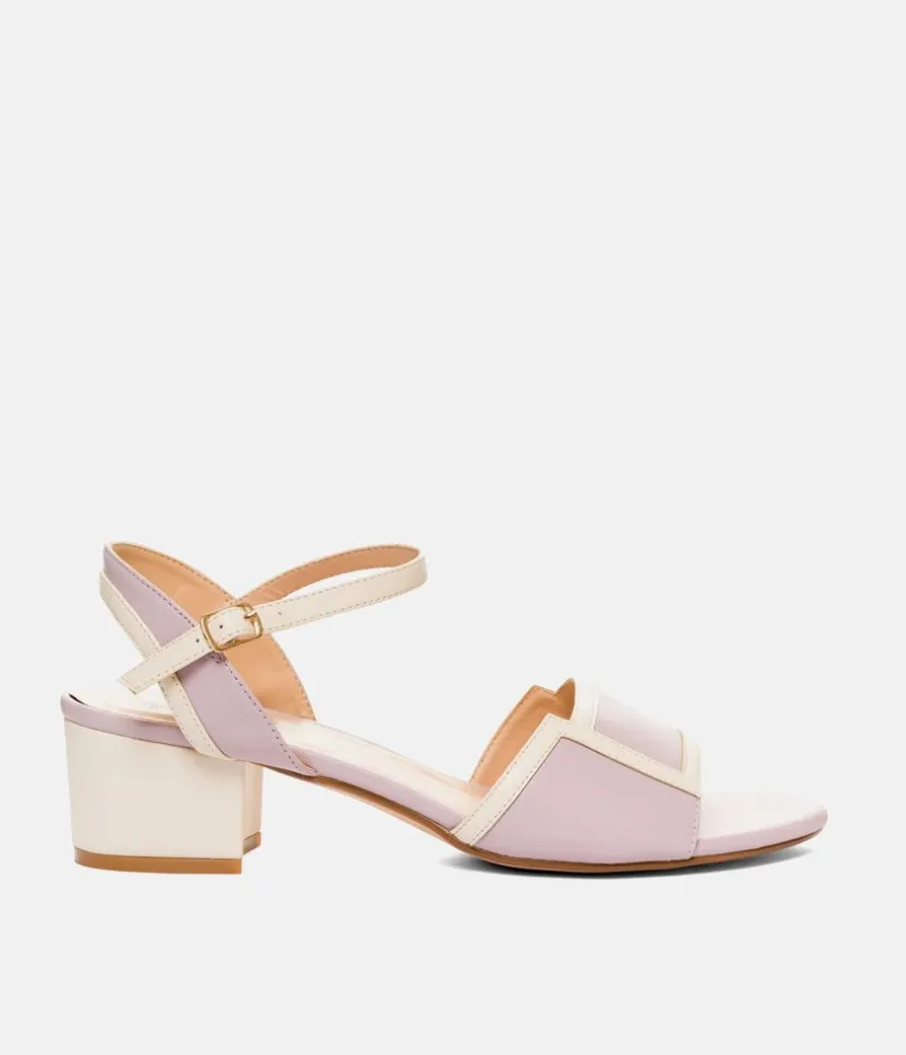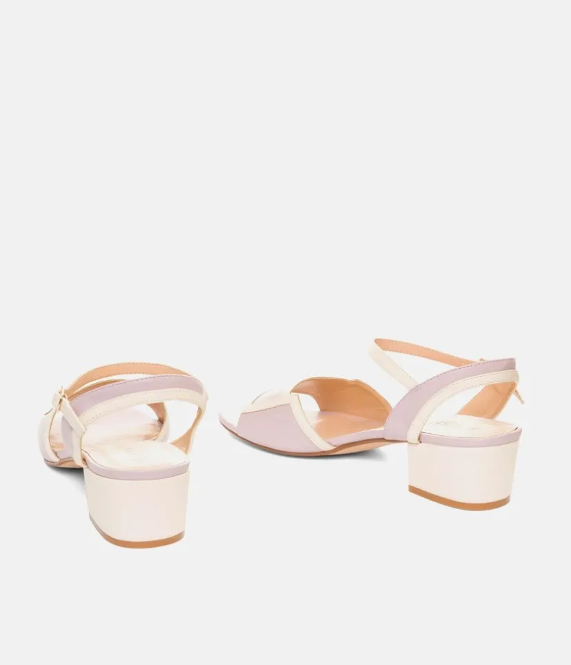 These low block heel sandals in a soft Malva colour with contrasting cream are a stylish choice and the slingback design with a wide toe strap with buckle closure offer an adjustable fit.