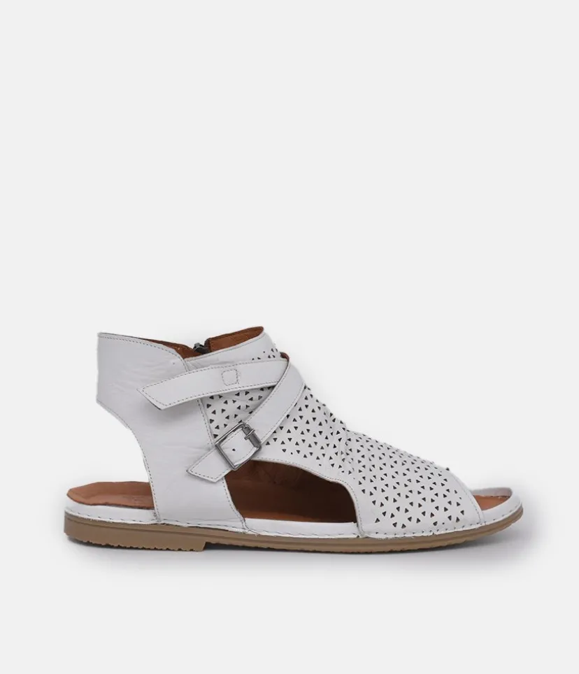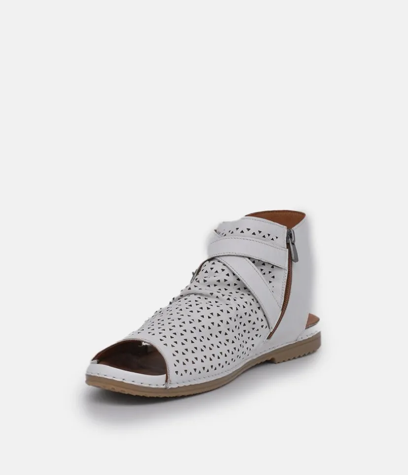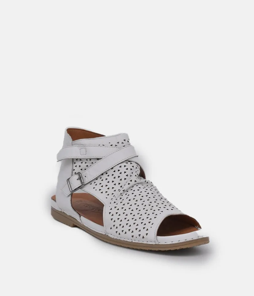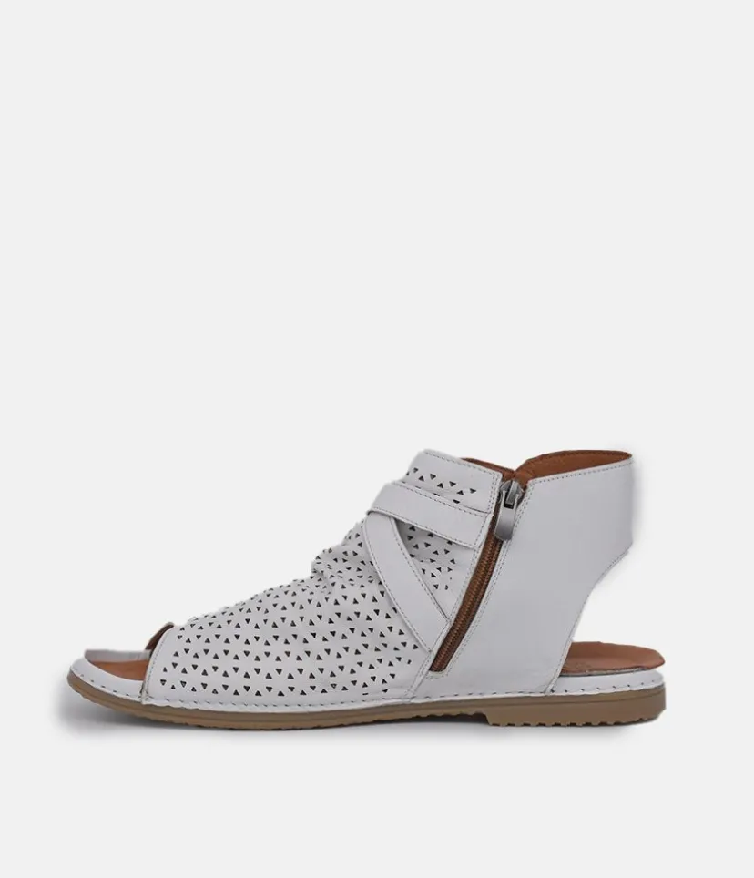 If you are looking for a comfy summer sandal then these are for you. These Bootie style sandals feature a pretty laser cut upper with decorative straps. Crafted from soft leathers with a cushioned leather lining, sitting atop a flexible sole.