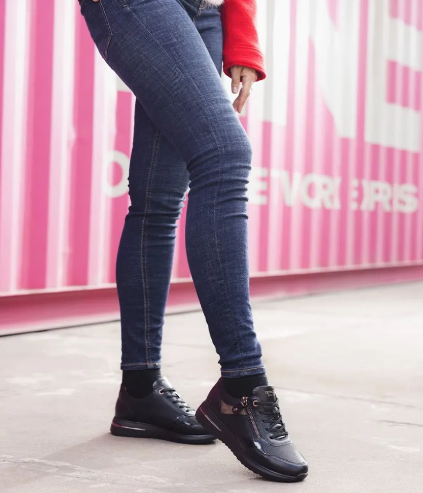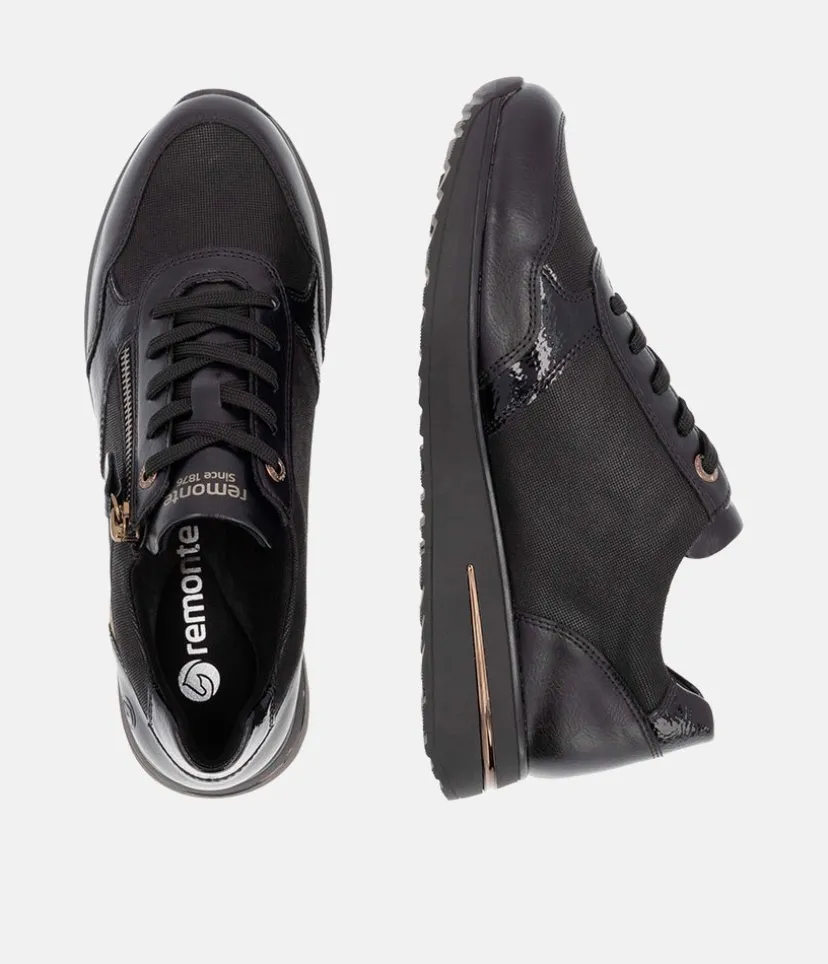 This is a lovely new model from Remonte with a slight wedge heel that adds a subtle lift for all day comfort. Featuring patent and leather combi upper, leather and synthetic lining and side zip fastening. The lace-up front allows for a customisable fit, while the side zip ensures easy on-and-off. The wedge heel is lightweight, flexible and shock absorbing and the memory foam insole is removable.