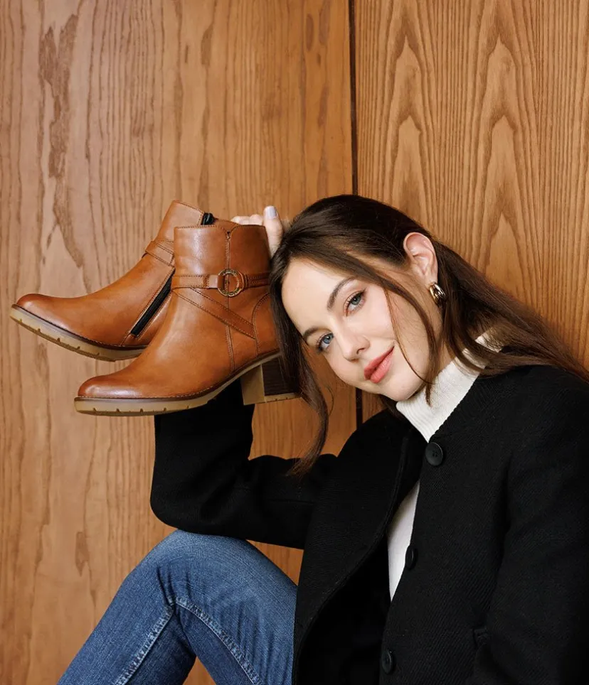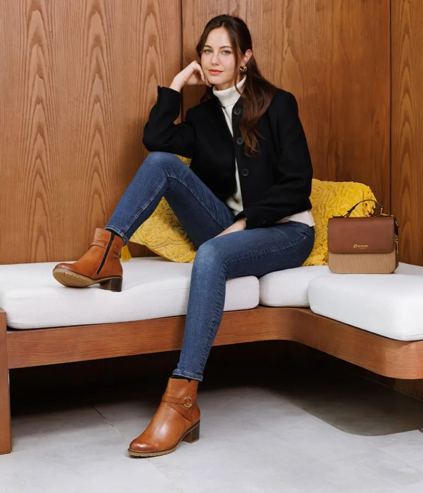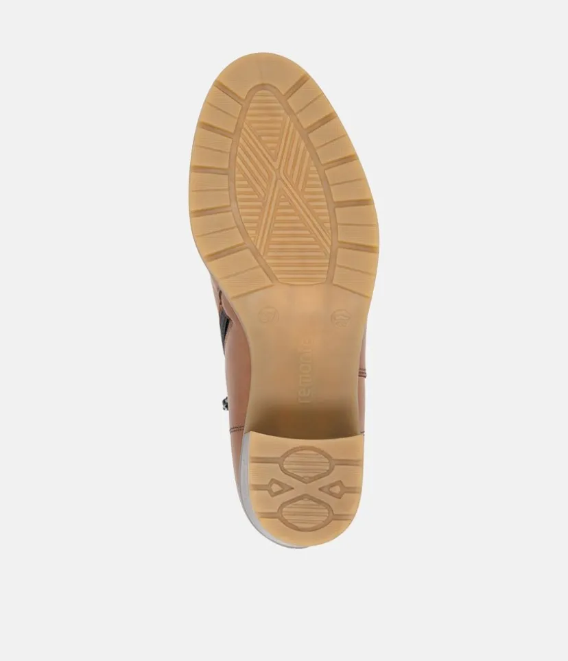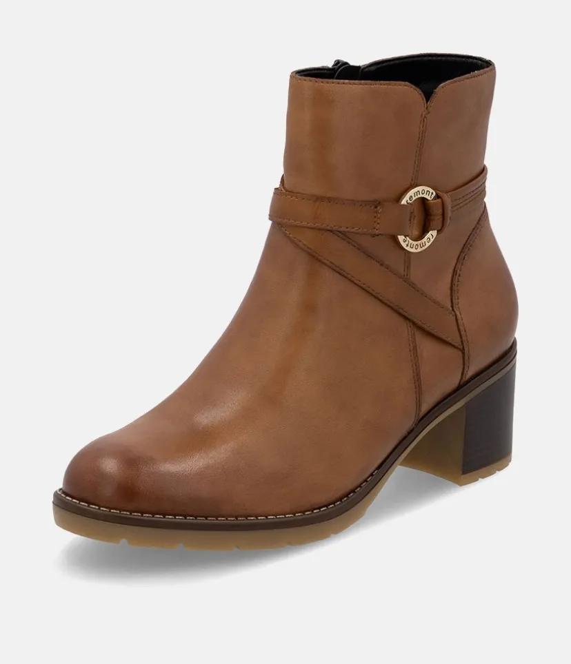 This is a Fabulous new style ankle boot from Remonte in classic Brown leather. Both stylish and versatile, heeled ankle boots are the perfect partner for any of your autumn or winter looks! This Classic style boot has an almond shaped toe, decorative buckle and rests on a block heel. Perfect for day to evening wear.