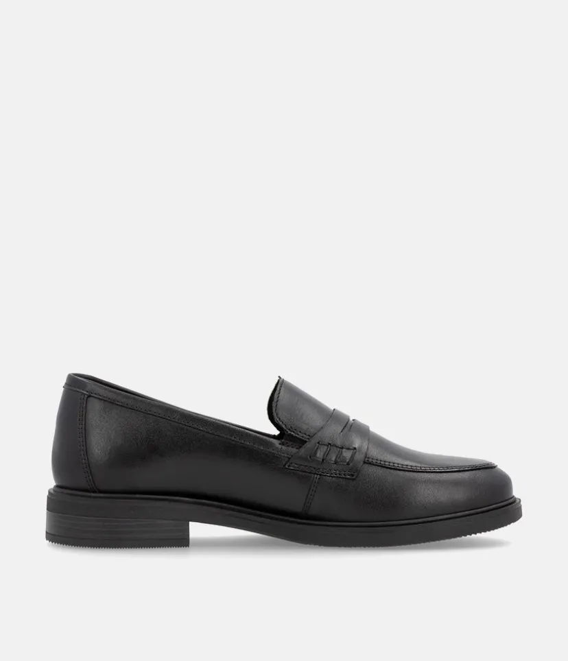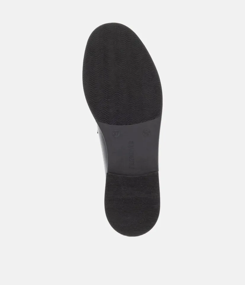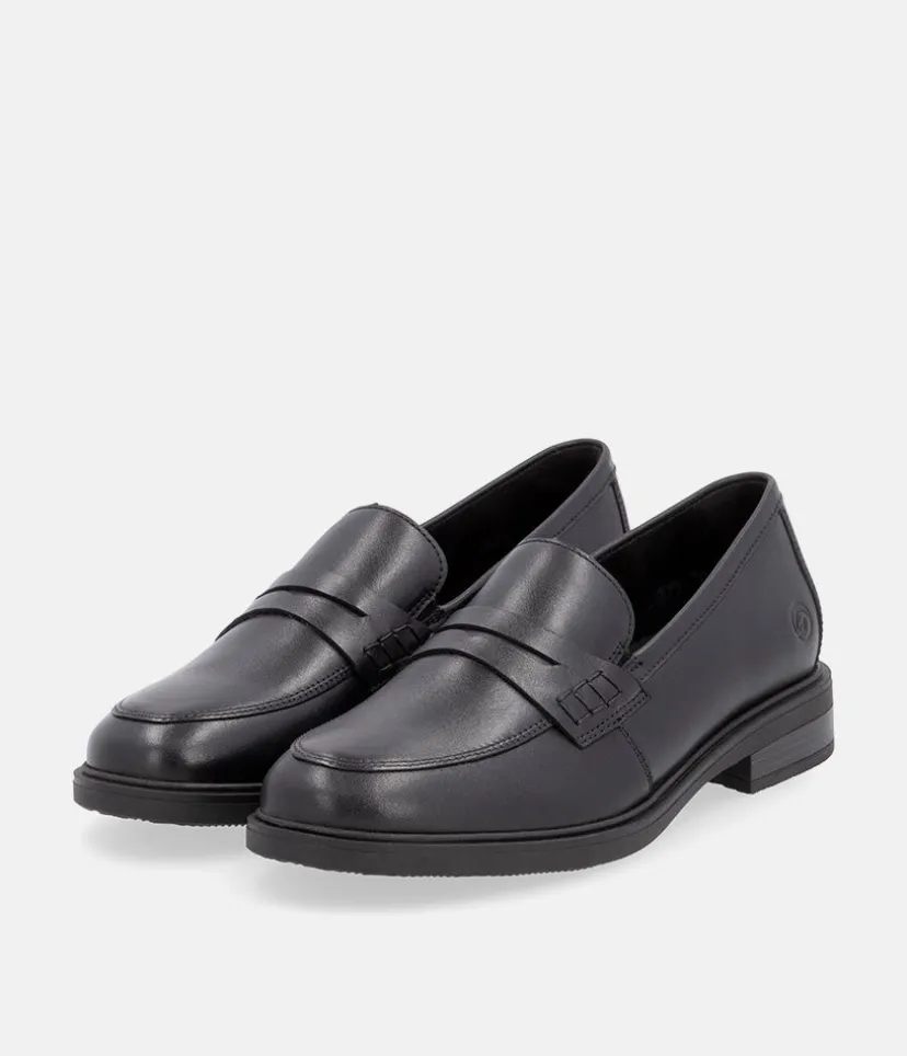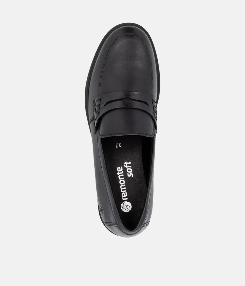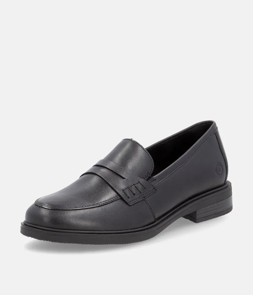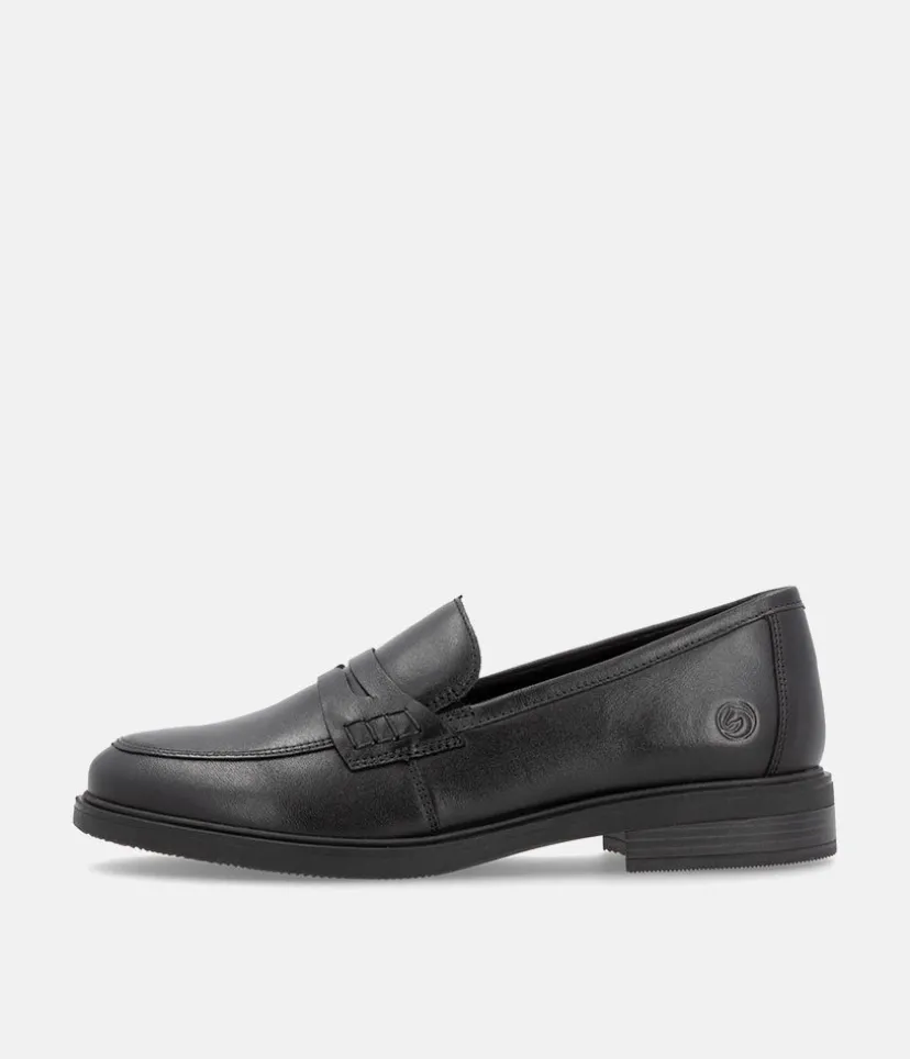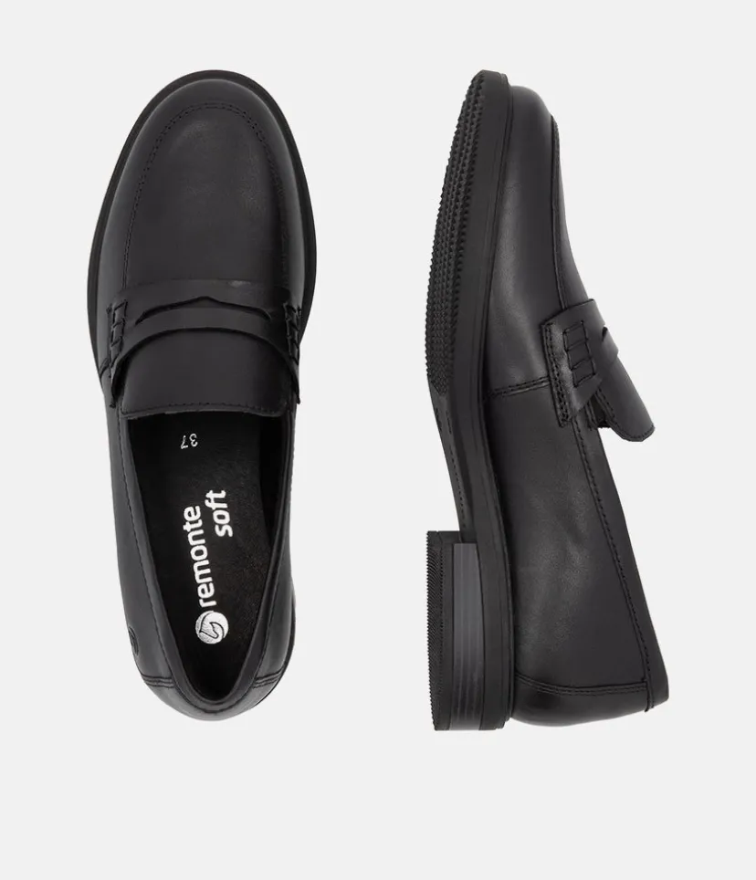 Penny loafers are a timeless and Iconic classic in womens footwear. This new model from Remonte come in black leather, making them a versatile addition to any wardrobe. These shoes are not only stylish, but also practical, with a sturdy rubber sole that provides excellent grip and durability. Whether you’re dressing up for work or going out for a casual weekend, these loafers are the perfect choice.