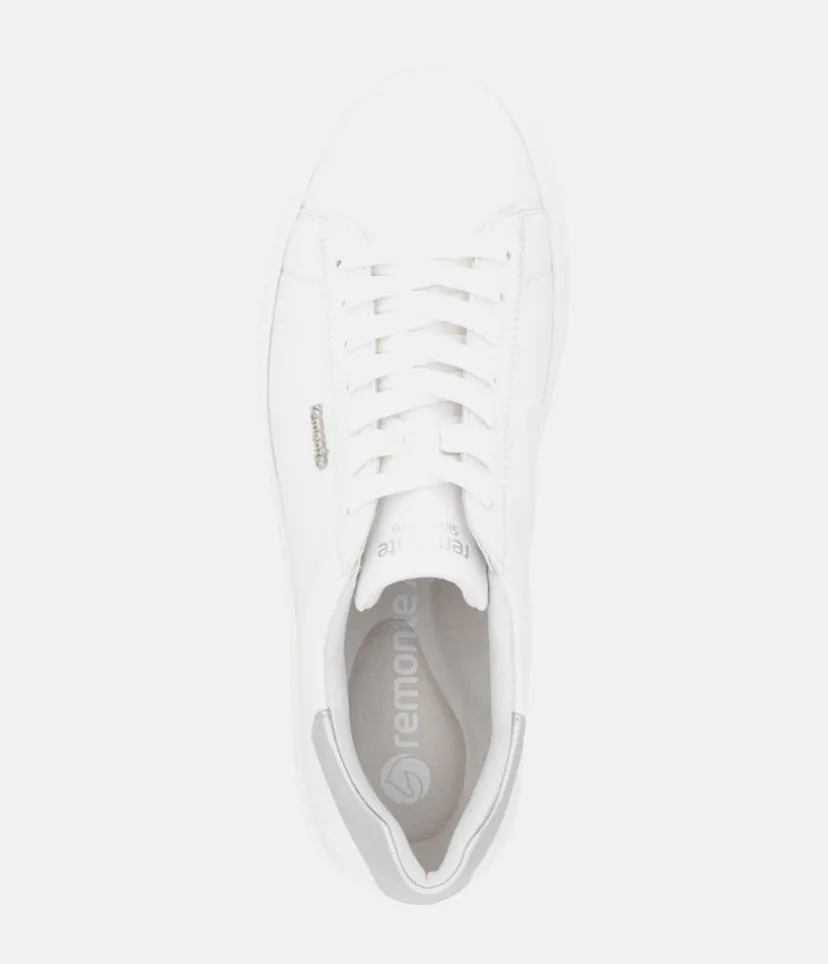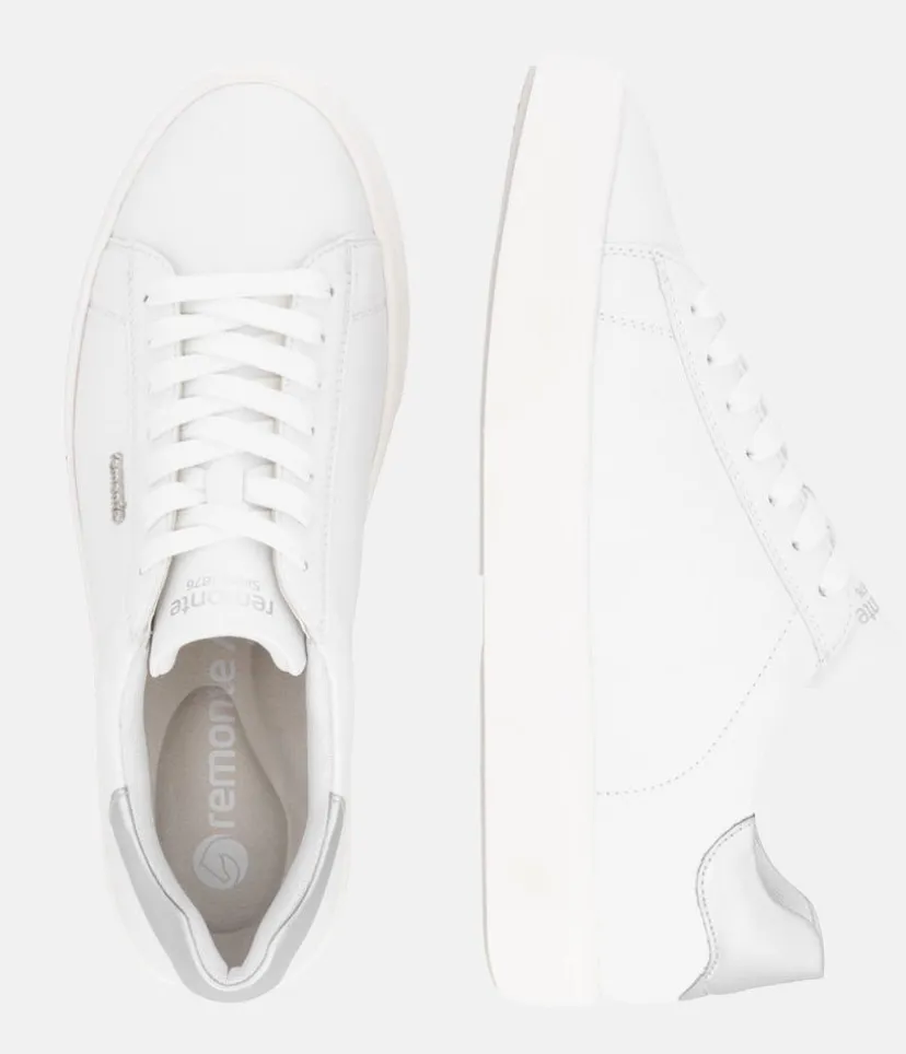 Introducing this Versatile New White Leather Trainer from Remonte with its Silver trim detail. With cushioned and removable Remonte Lite ‘n Soft insole that provides optimal comfort and adapts to the contours of your foot., it’s perfect for everyday wear. Enjoy superior comfort and style with this must-have shoe for your new season wardrobe.