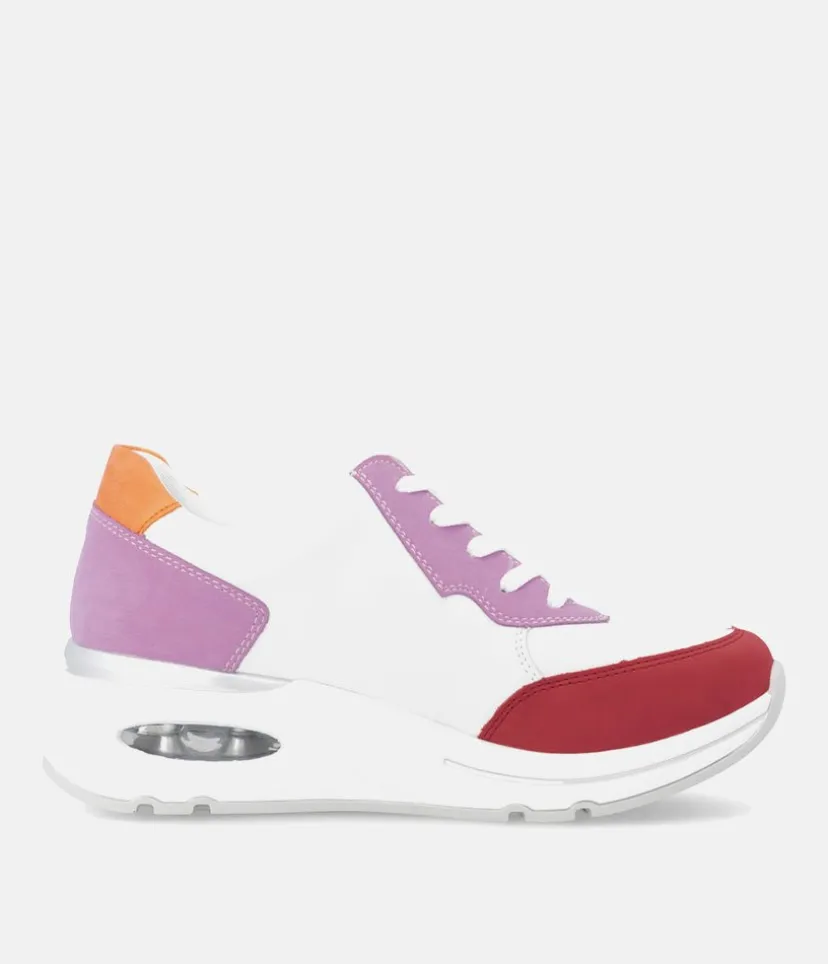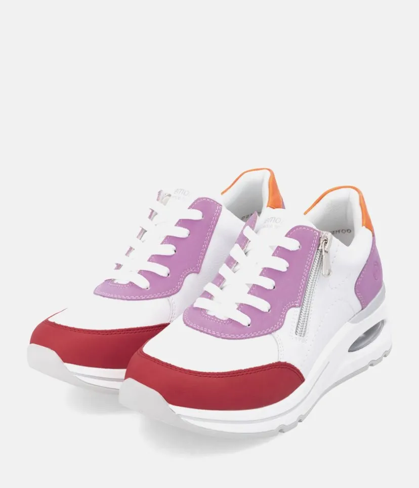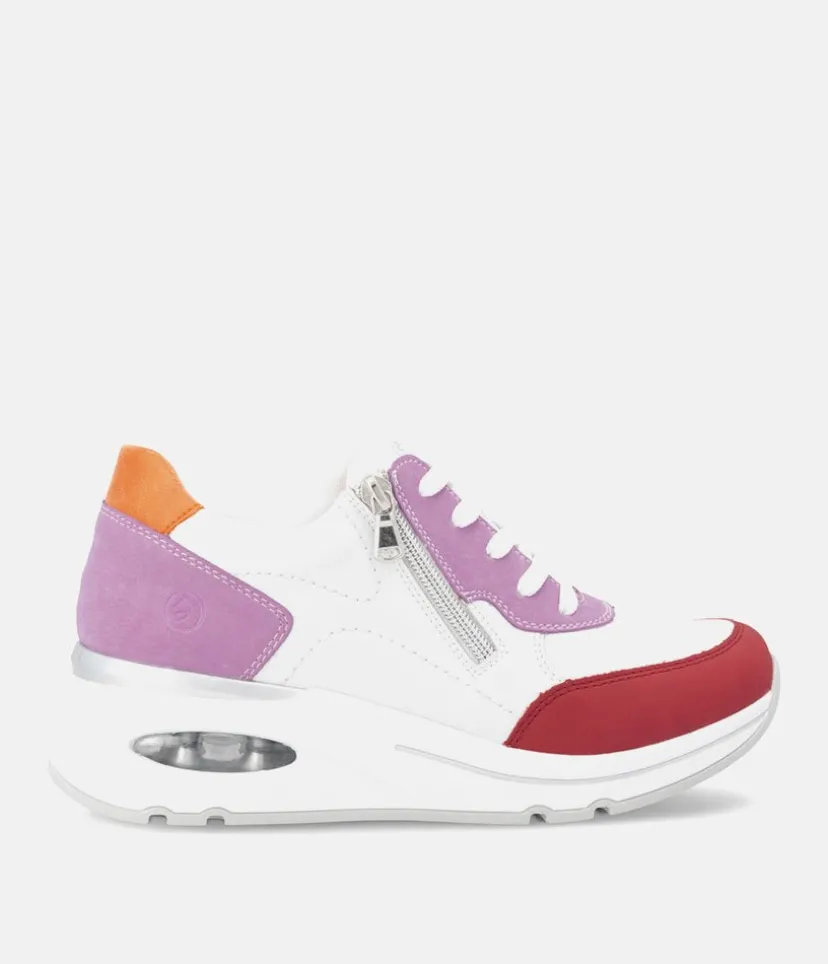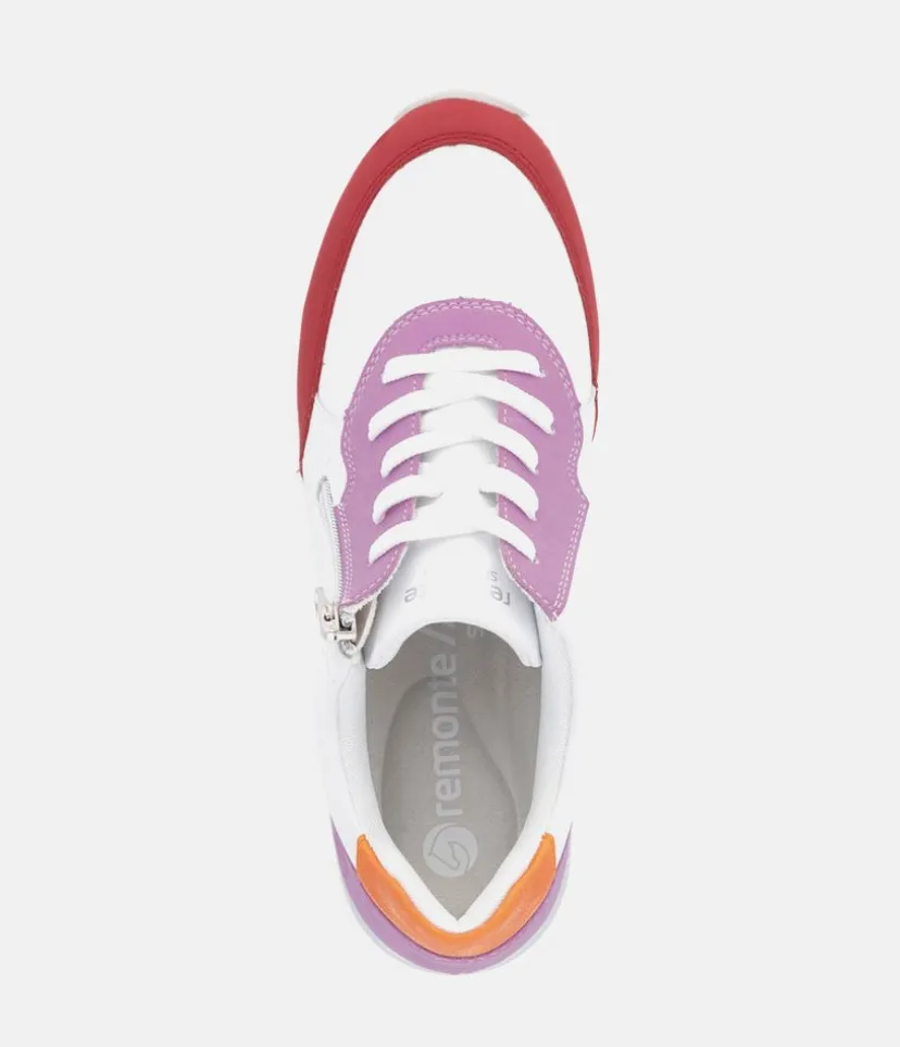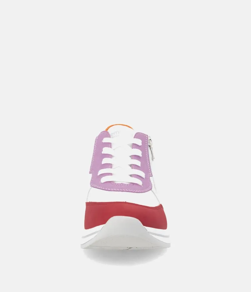 Introducing this New Style from Remonte, the Uno Wedge Zip trainer boasts a leather upper in a combination of White, Pink, Red and Orange with textile lining, and textile footbed. With a comfortable wedge heel and removable insoles, it’s perfect for everyday wear. Enjoy superior comfort and style with this must-have shoe for your new season wardrobe. Why not pair with this gorgeous Rieker Backpack.