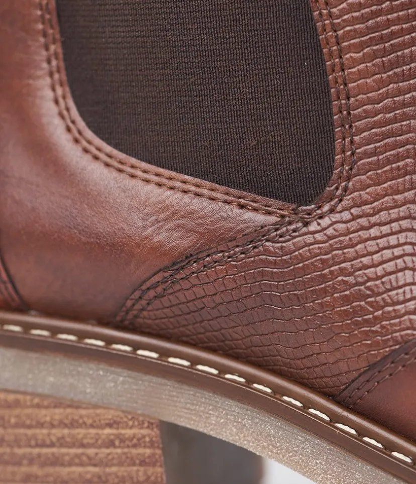 This is a great new style ankle boot from Remonte this season in a classic Brown leather with textured panelling and an elasticated side gusset to complete the look. With an inside zip for easy access and a soft textile lining.