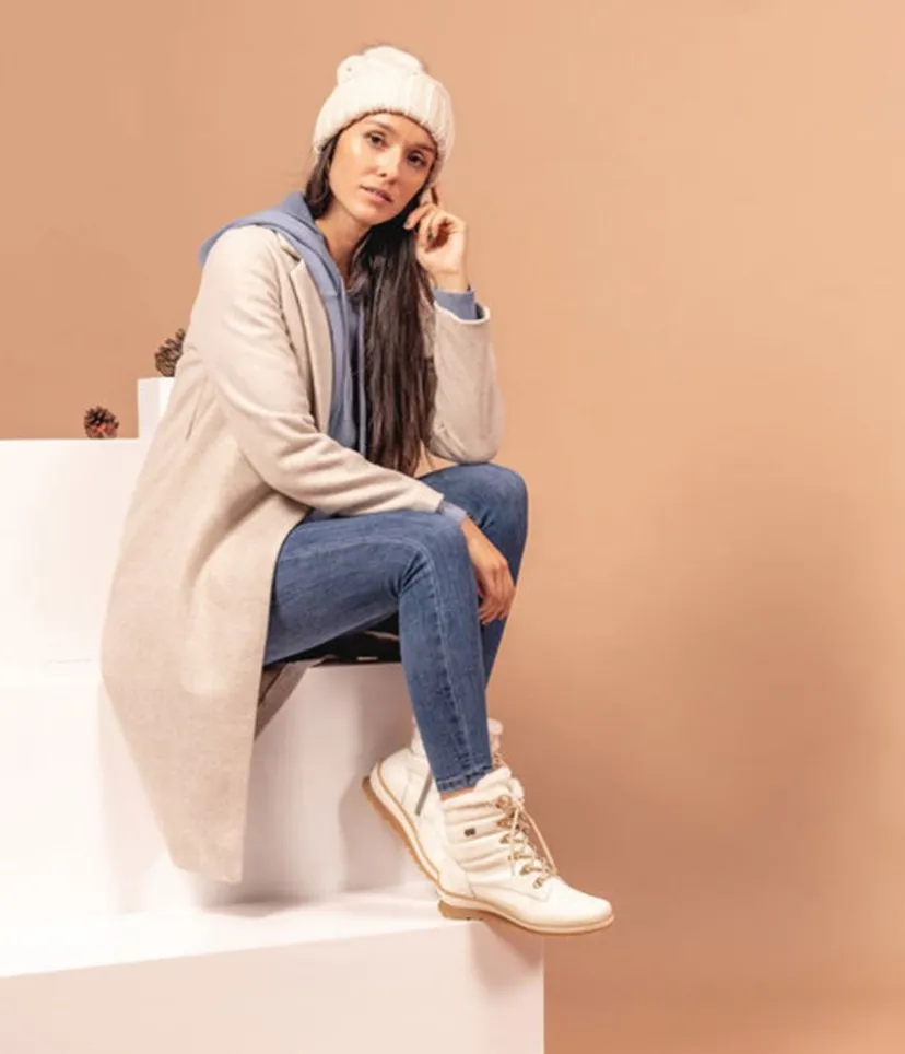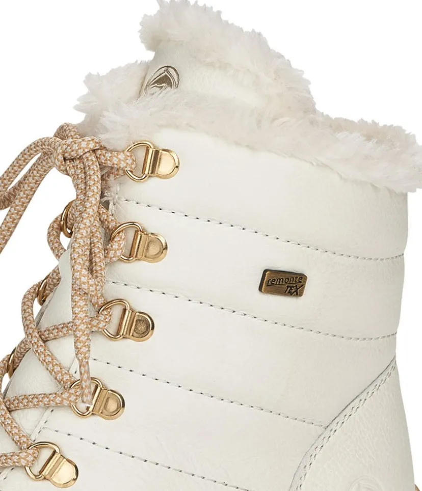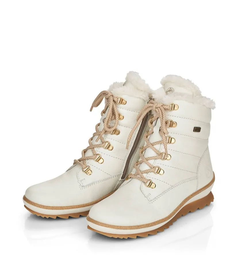 These off white leather biker style ankle boots from Remonte are a must-have. They will be sure to brighten up any look in your wardrobe this season. Featuring a chunky profiled sole with a non-slip rubber coating, functional laces and side zip for easy on and off. As well as looking great the warm Lambs Wool lining make this style super cosy to wear.