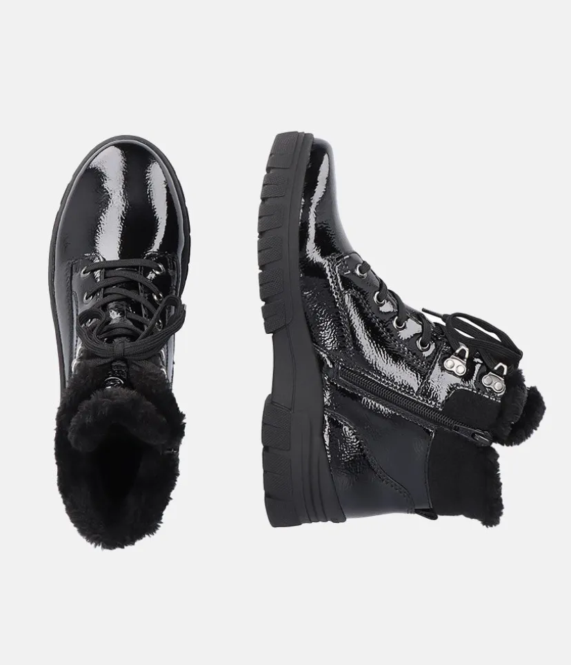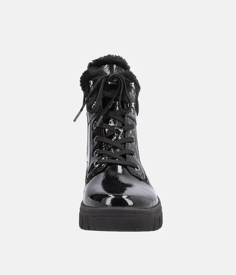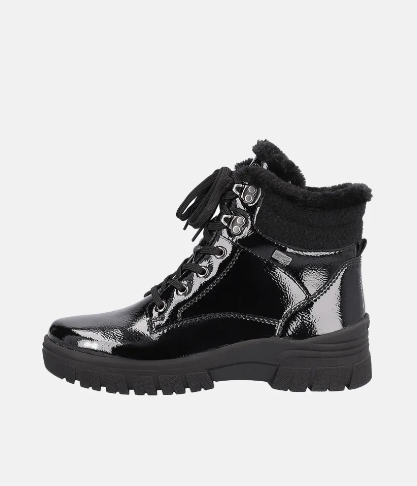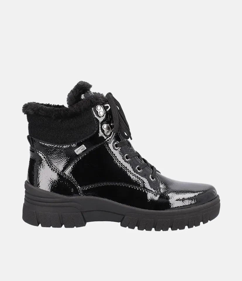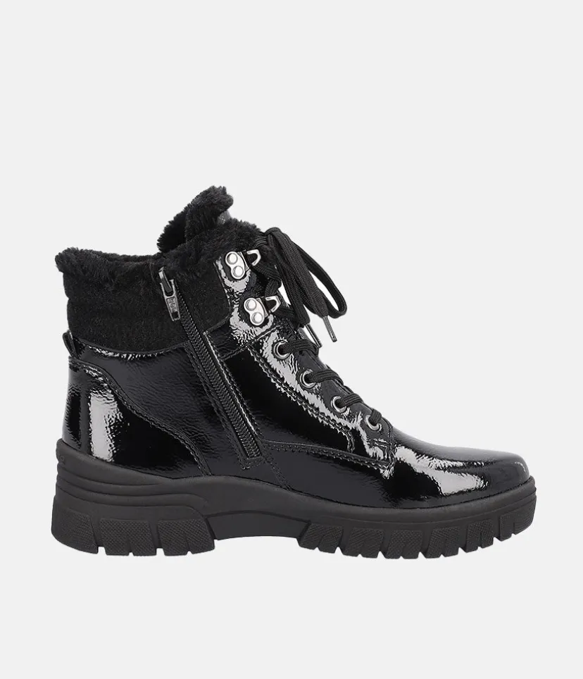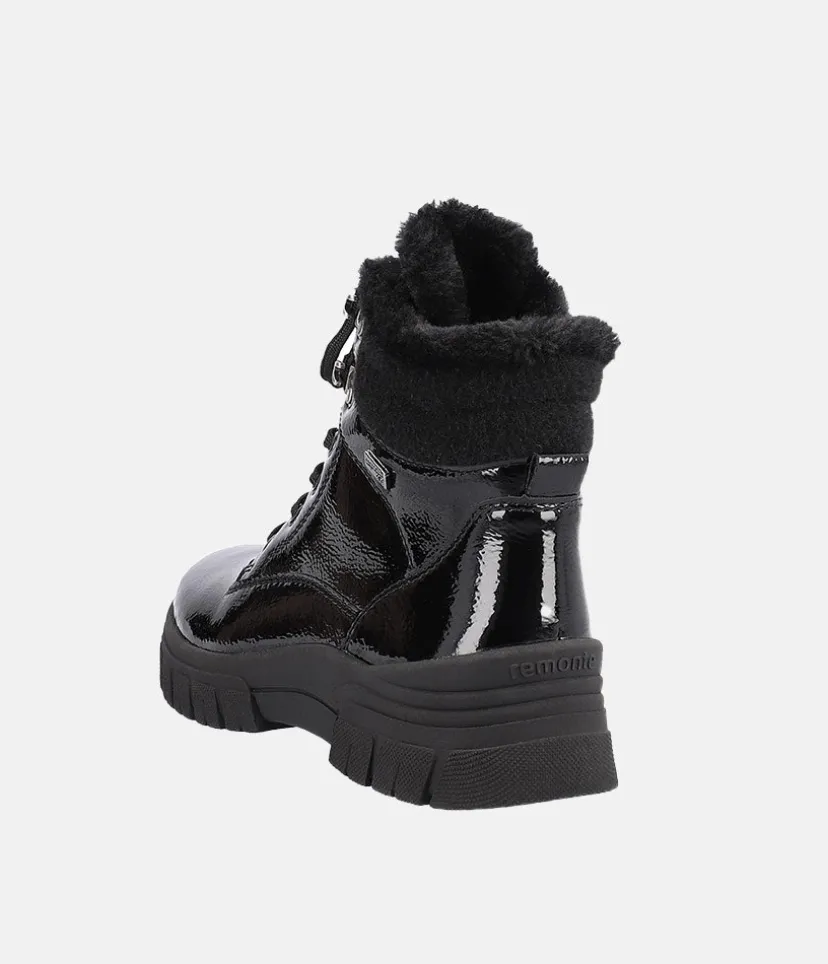 These New Style ankle boots from Remonte are a super choice for the colder months. A stylish looking boot with side zip, cosy wool collar, adjustable laces and Remonte Tex shower resistant Technology. These boots stand upon a chunky cleated sole that provides a practical grip and traction with every step and feature the highly water resistant RemonteTEX membrane, making them versatile for all conditions
