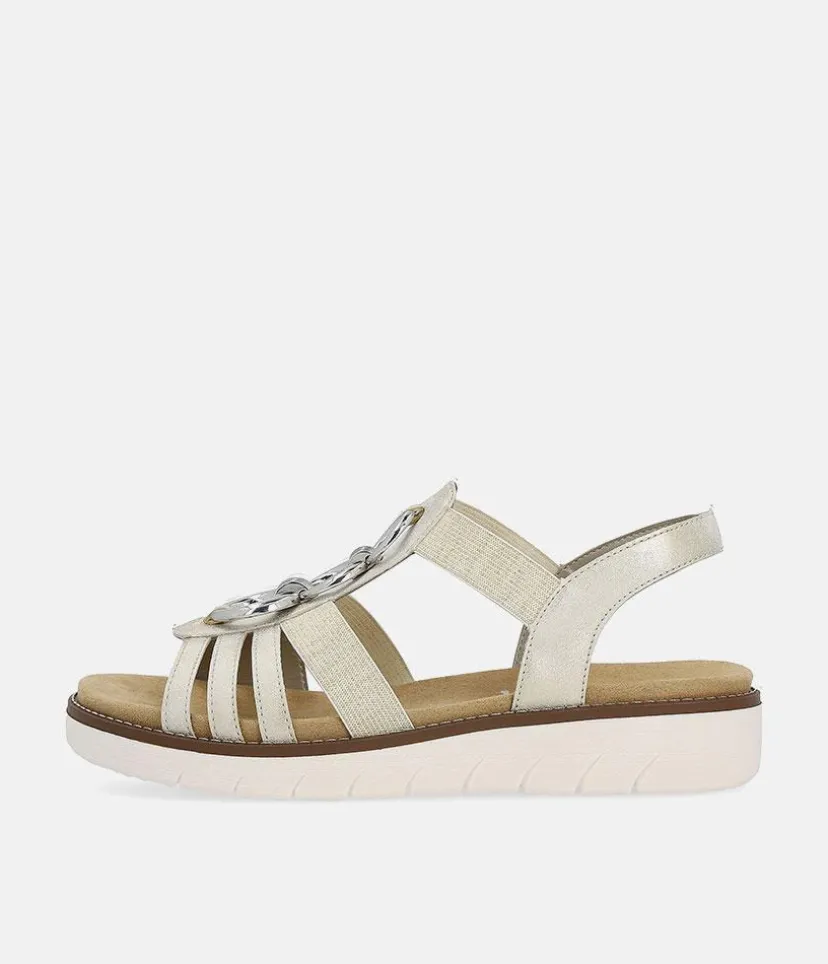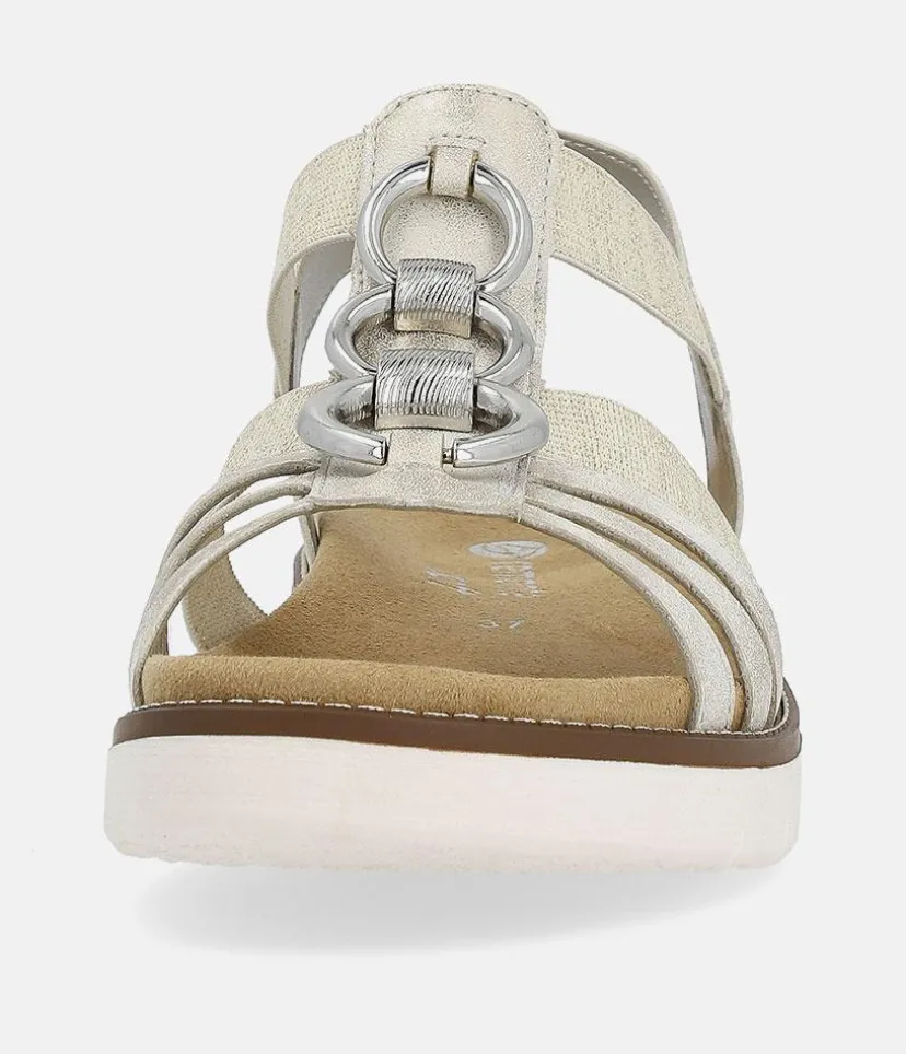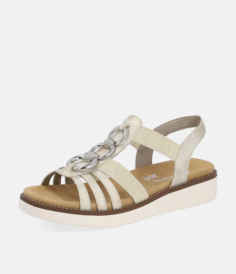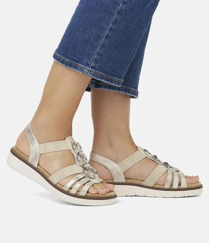 If you are looking for comfy summer sandals then these are for you. These Beige sandals from Remonte feature a gorgeous embellished upper and the elastic straps allow for easy on and off and ensure a secure and comfortable fit. The rubber moulded sole gives improved grip and the small heel provides a little lift for additional support. The Lite ‘n Soft technology allows for the combination of a lightweight outsole and a soft removeable leather insole keeping your feet cool, dry and comfortable..