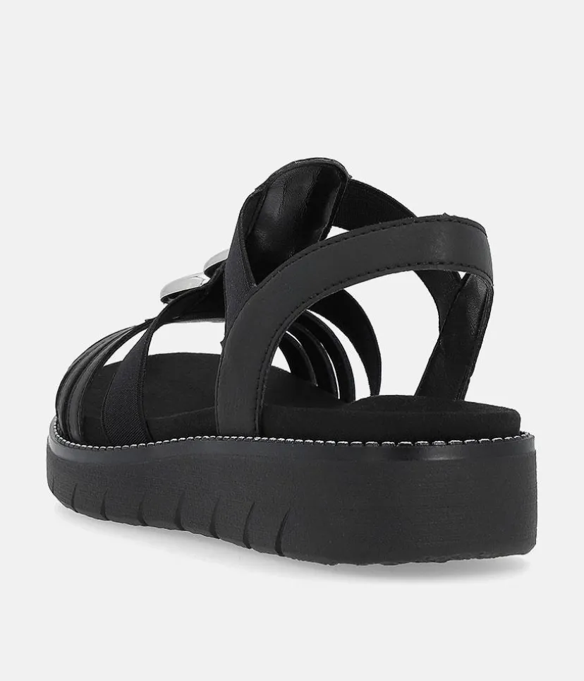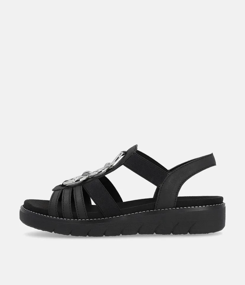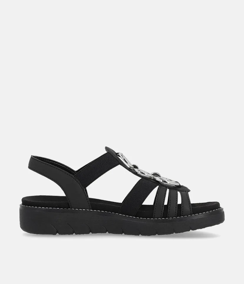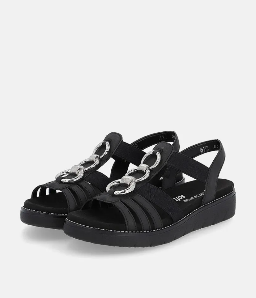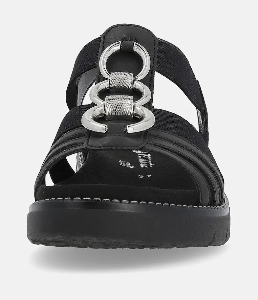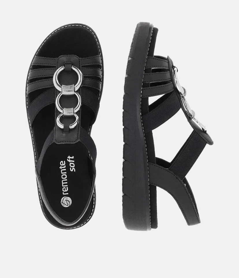 If you are looking for comfy summer sandals then these are for you. These Blacl Leather sandals from Remonte feature a gorgeous embellished upper and the elastic straps allow for easy on and off and ensure a secure and comfortable fit. The rubber moulded sole gives improved grip and the small heel provides a little lift for additional support. The Lite ‘n Soft technology allows for the combination of a lightweight outsole and a soft removeable leather insole keeping your feet cool, dry and comfortable..
