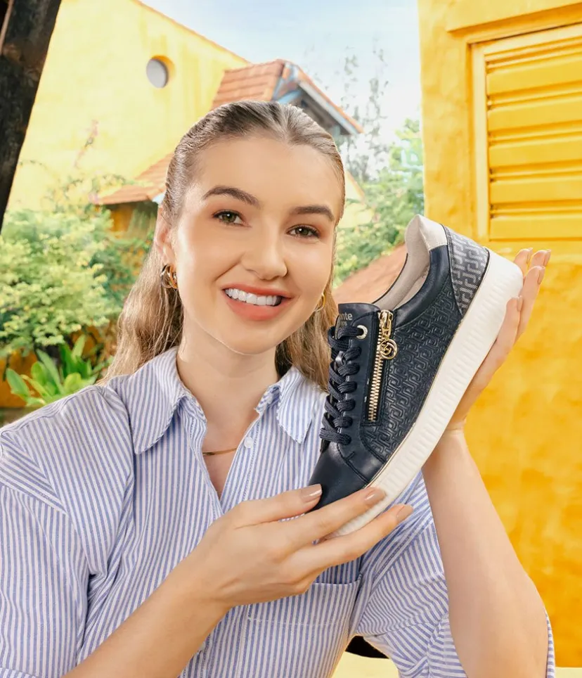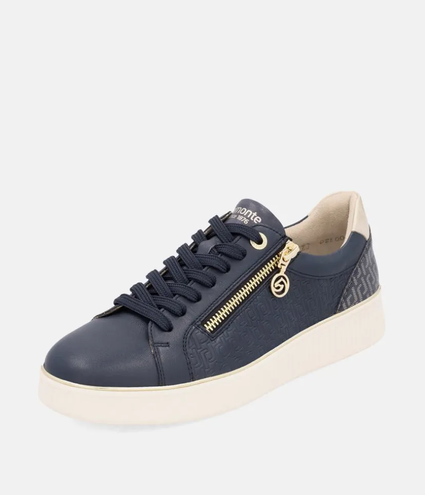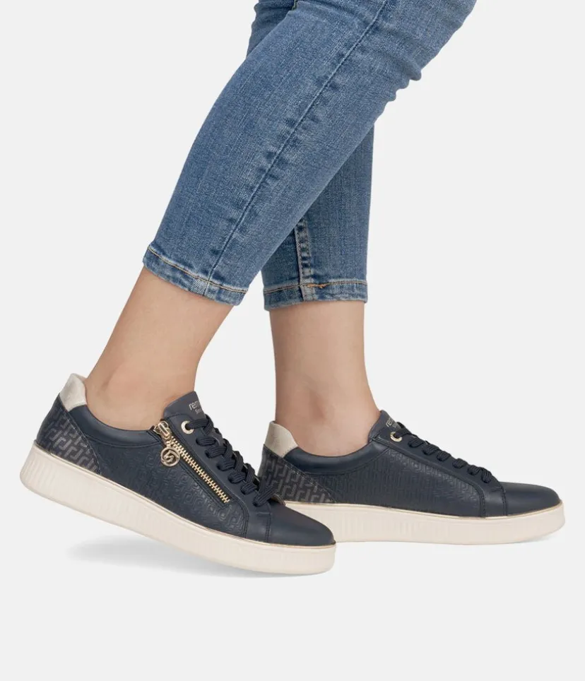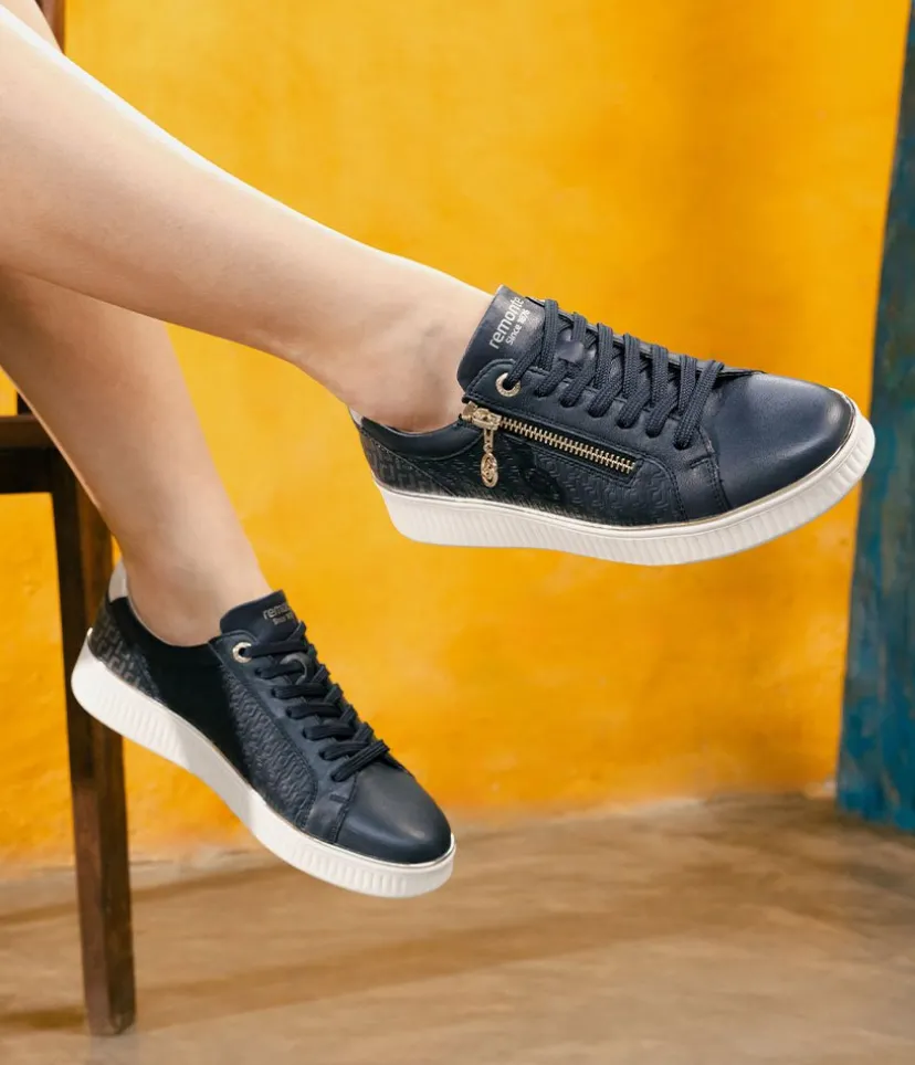 Introducing this Fabulous New Navy Leather Trainer from Remonte with a fashionable and feminine design. Featuring a Navy upper with elegant gold accents, adding a touch of sophistication to this sporty style. It’s a versatile choice that pairs well with jeans and more. Remonte shoes are known for prioritising comfort, and this model is no exception, with features like lightweight construction, flexible soles, and supportive insoles designed for all-day wear
