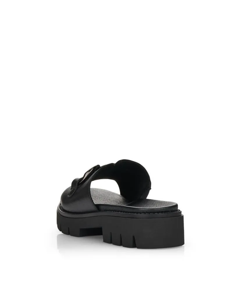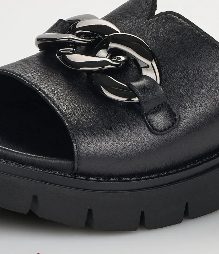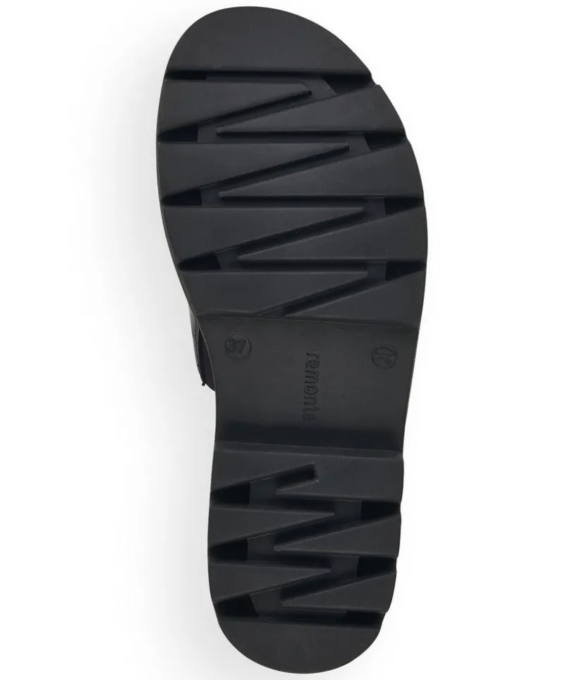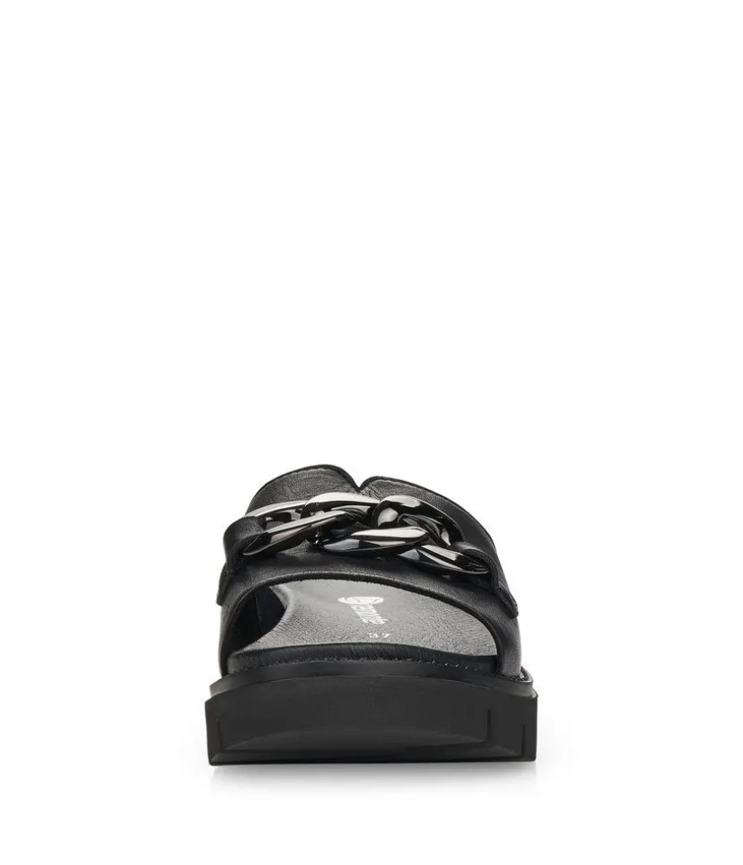 Elevate your look in every sense with these Trendy Slip on Sandals from Remonte. Simple in design, yet maximum on impact, these slides are a great choice for the warmer seasons. A wide strap crosses the instep ensures a secure comfortable fit, and the chain design is a real eye-catcher. The chunky black sole rounds off the shoe’s look of edgy sophistication. The Memosoft insole offers extra comfort and pampers your feet all day long.