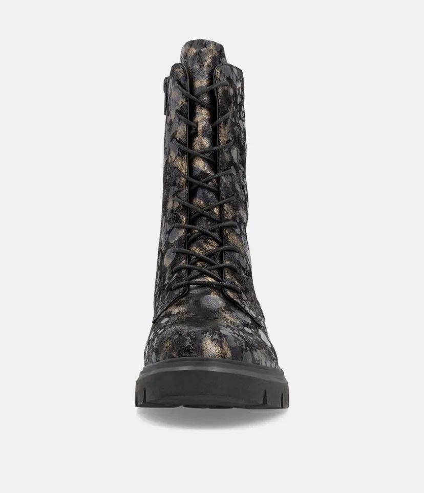 This is a Fantastic new style ankle boot from Remonte this season with it’s Gorgeous Black combination print upper in leather. This is the perfect pair to add some style to your new season wardrobe. With an inside zip for easy access and a soft textile lining.