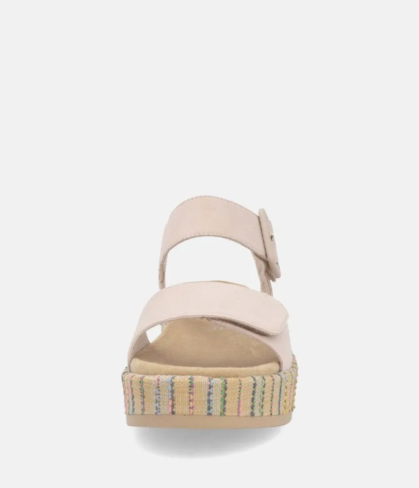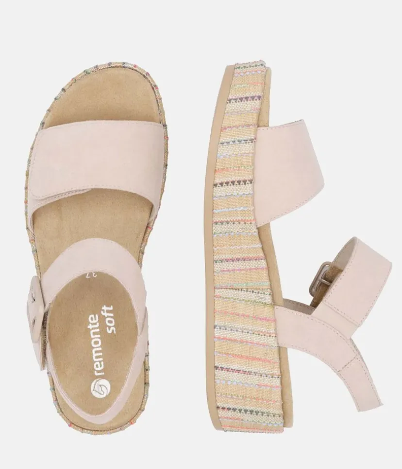 This is a gorgeous New Sandal from Remonte and features an adjustable velcro strap for a customizable fit, with a beautiful contrasting print design on the platform sole, and a shock-absorbent footbed to keep your feet comfortable and supported. Ideal to pack for a vacation to pair with just about any outfit from shorts to long dresses and Jeans.