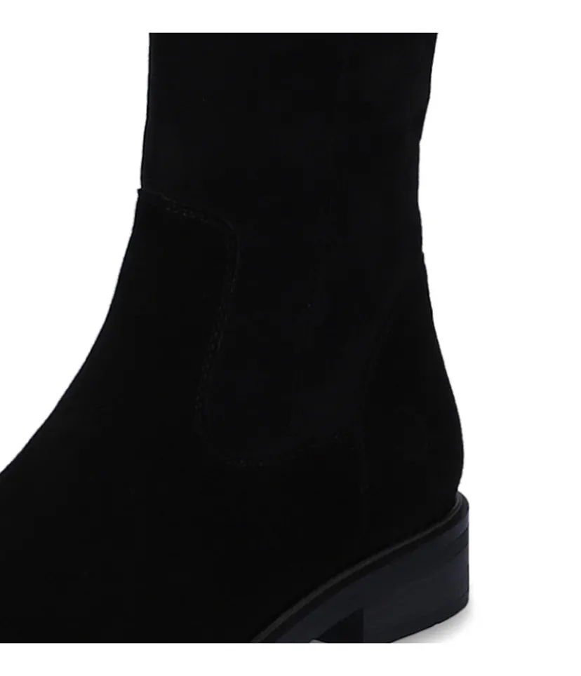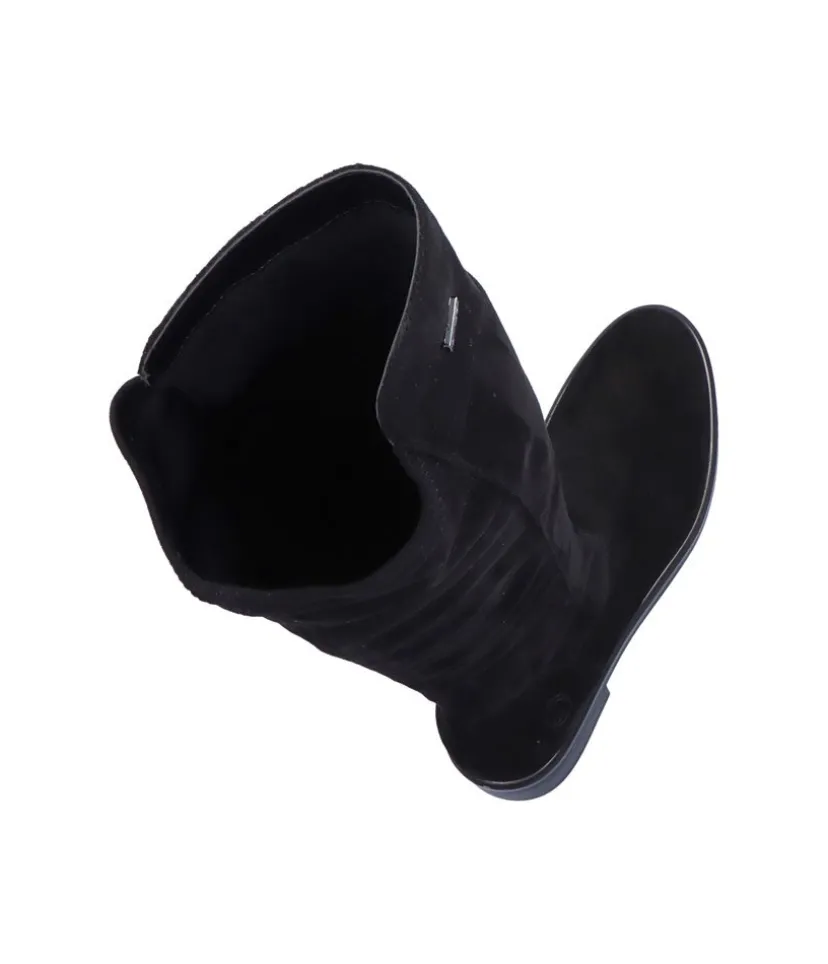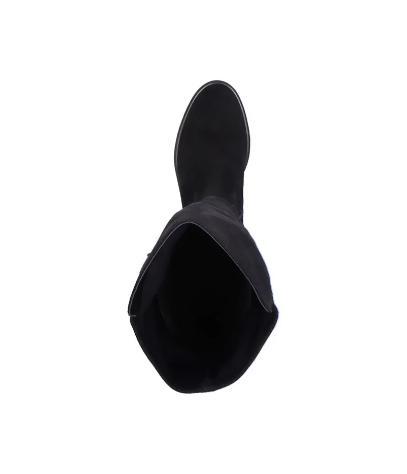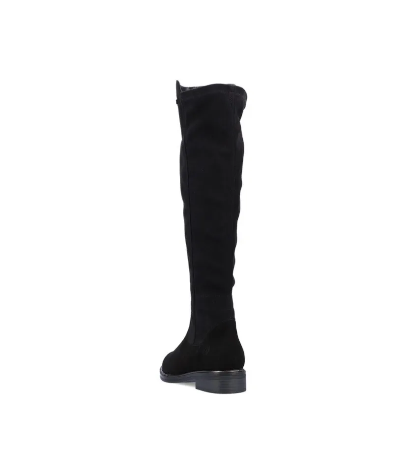 A Super stylish Long boot from Remonte, featuring a mix of black suede and synthetic leather uppers. Lined with a super soft velvet, complete with a cushioned removable insole RemonteTex water repellent membrane.