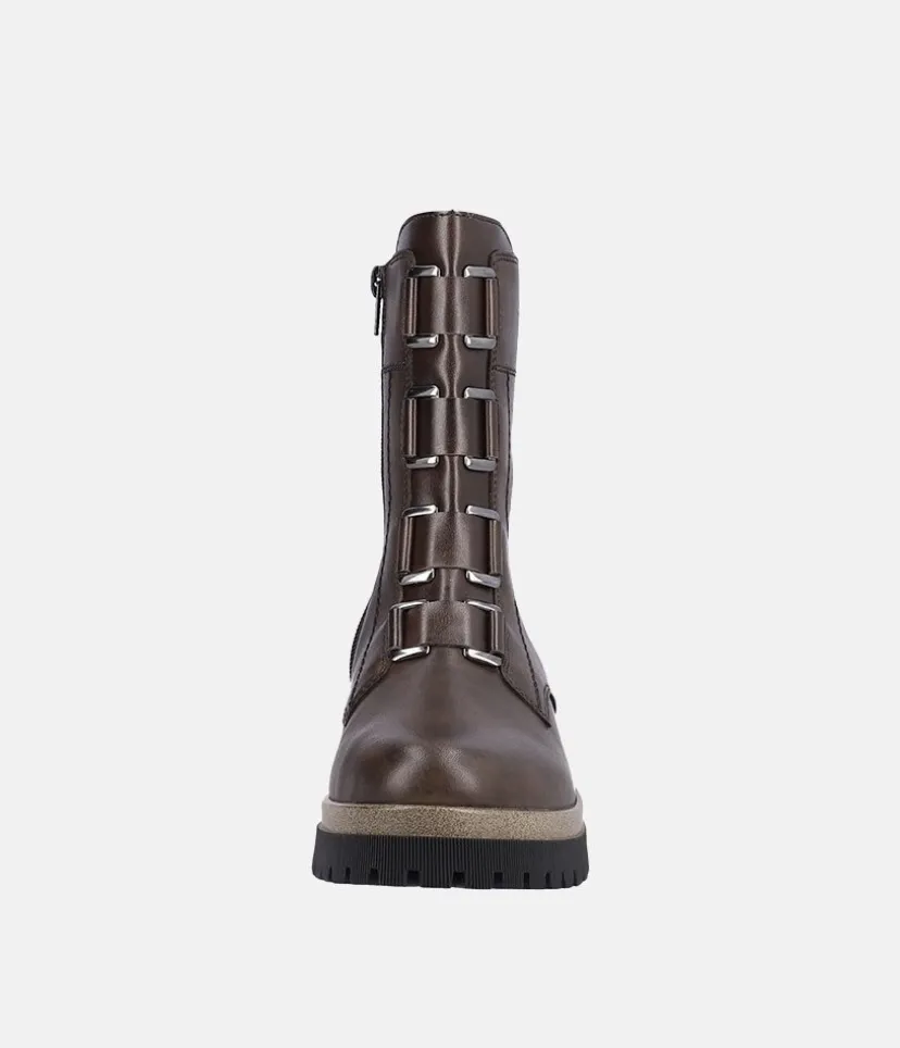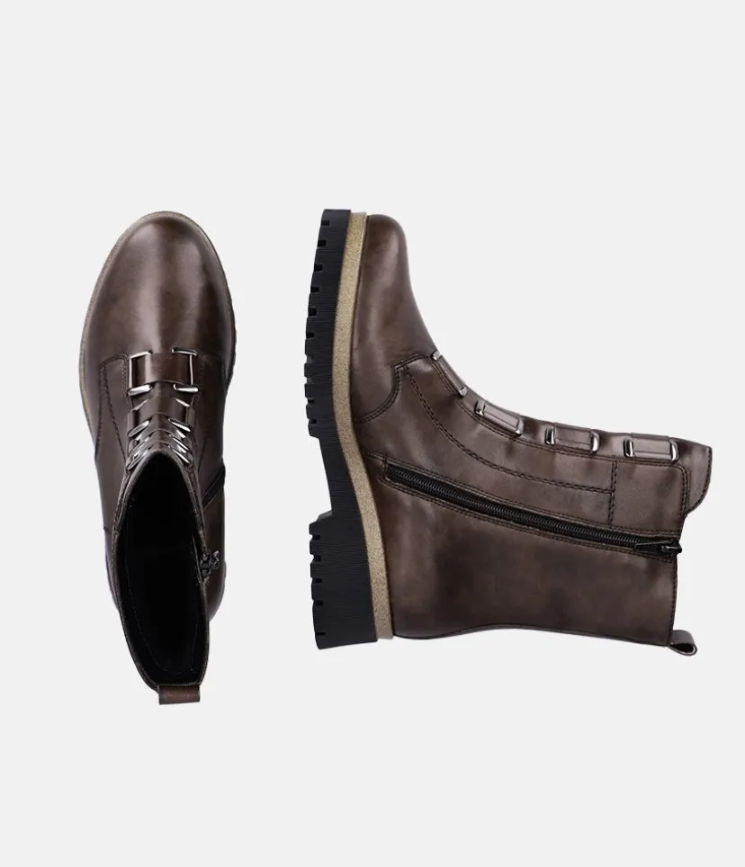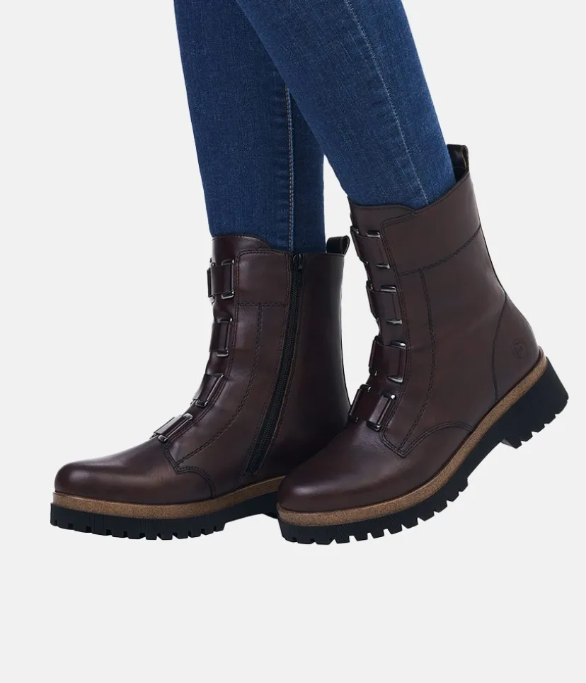 Let your inner rock chick out with these biker-style ankle boots from Remonte. The Buckle detailing give these boots a fab finish along with the chunky cleated sole. The super soft velvety velour lining and removable insole are perfect for keeping feet warm during the colder months.