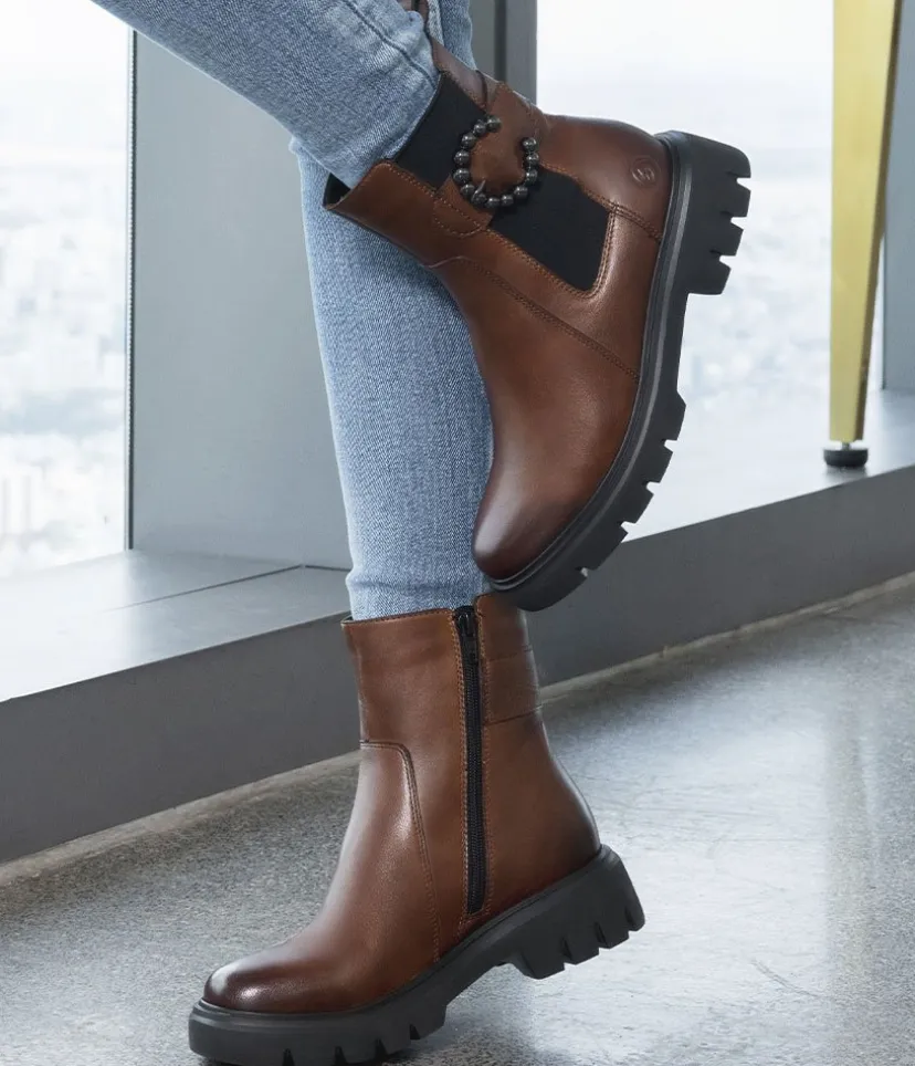 Elevate your style with this perfect blend of rugged style and everyday comfort with bubble buckle detailing, an elasticated panel, and convenient pull tab. Slip them on and off effortlessly with the side zip fastening. Featuring a chunky sole, these boots offer not only fashion but function. Keep your feet cozy and comfortable with the warm fleece lining, and shock absorbing insole. In addition the sole is light and flexible for all-day wear.