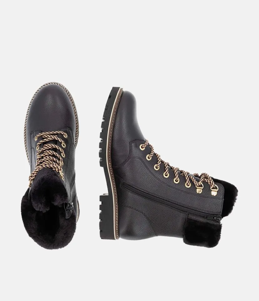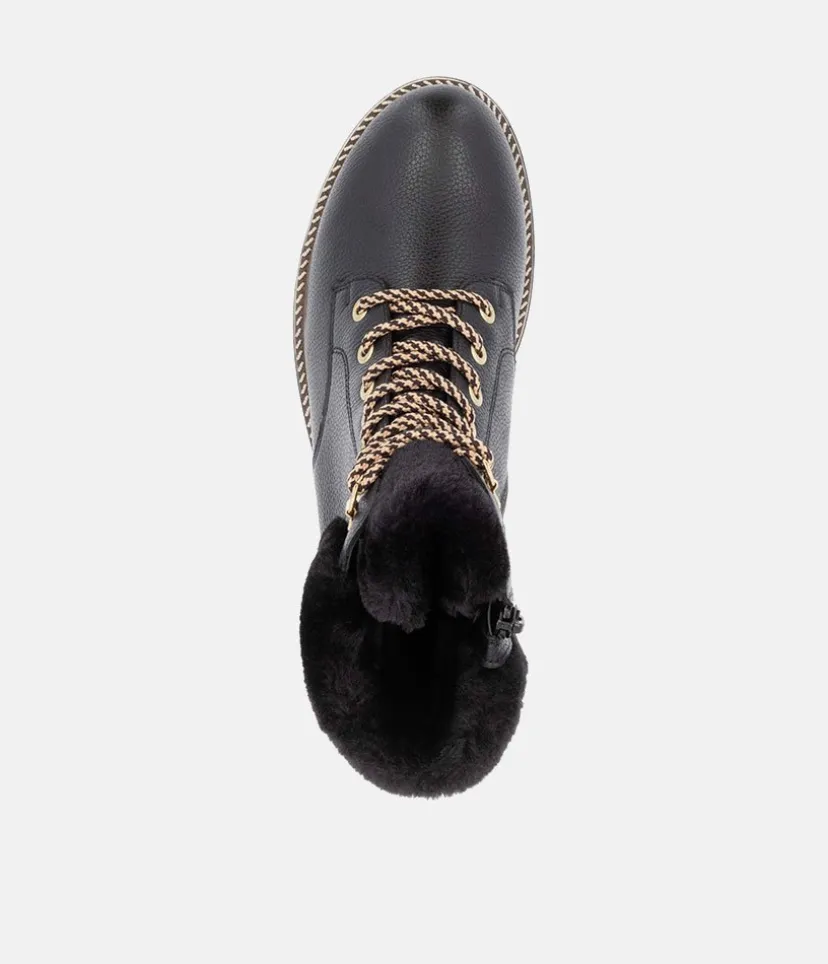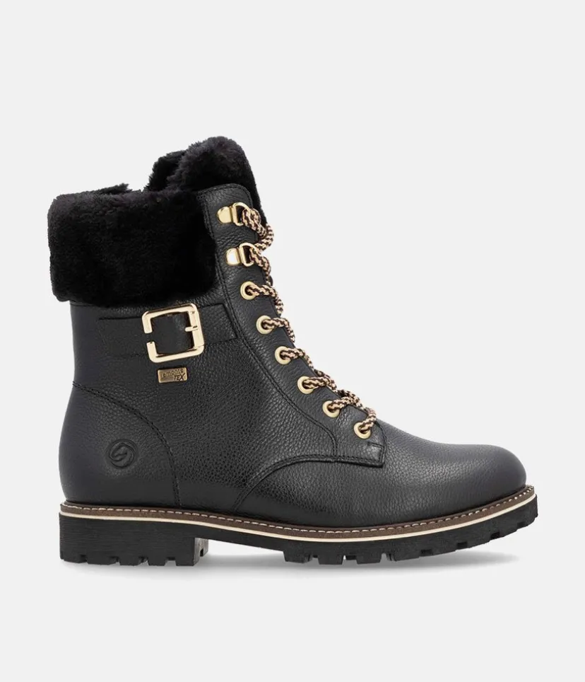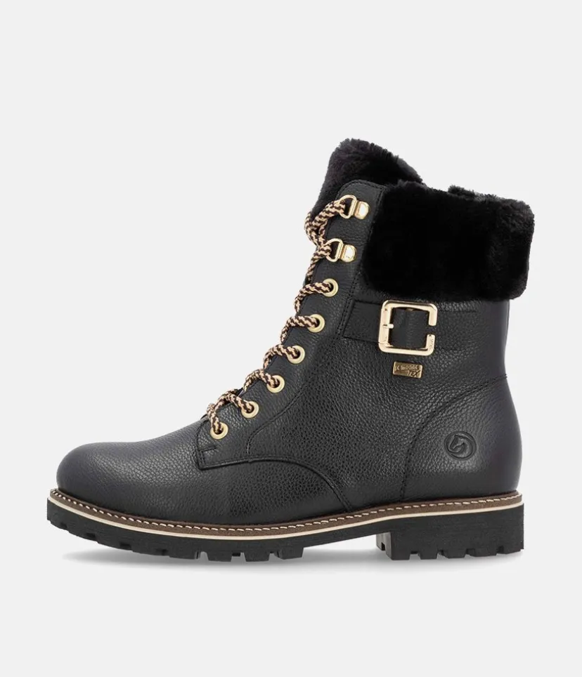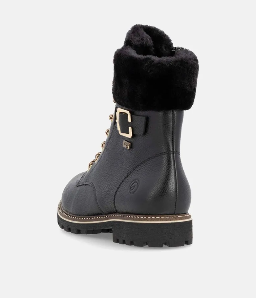 This Remonte style offers a perfect blend of style and functionality. Featuring a decorative buckle, lace and zip fastenings, leather upper, and cosy warm wool lining. The chunky outer soles ensure durability and grip, while the water-resistant design keeps your feet dry in any weather.
