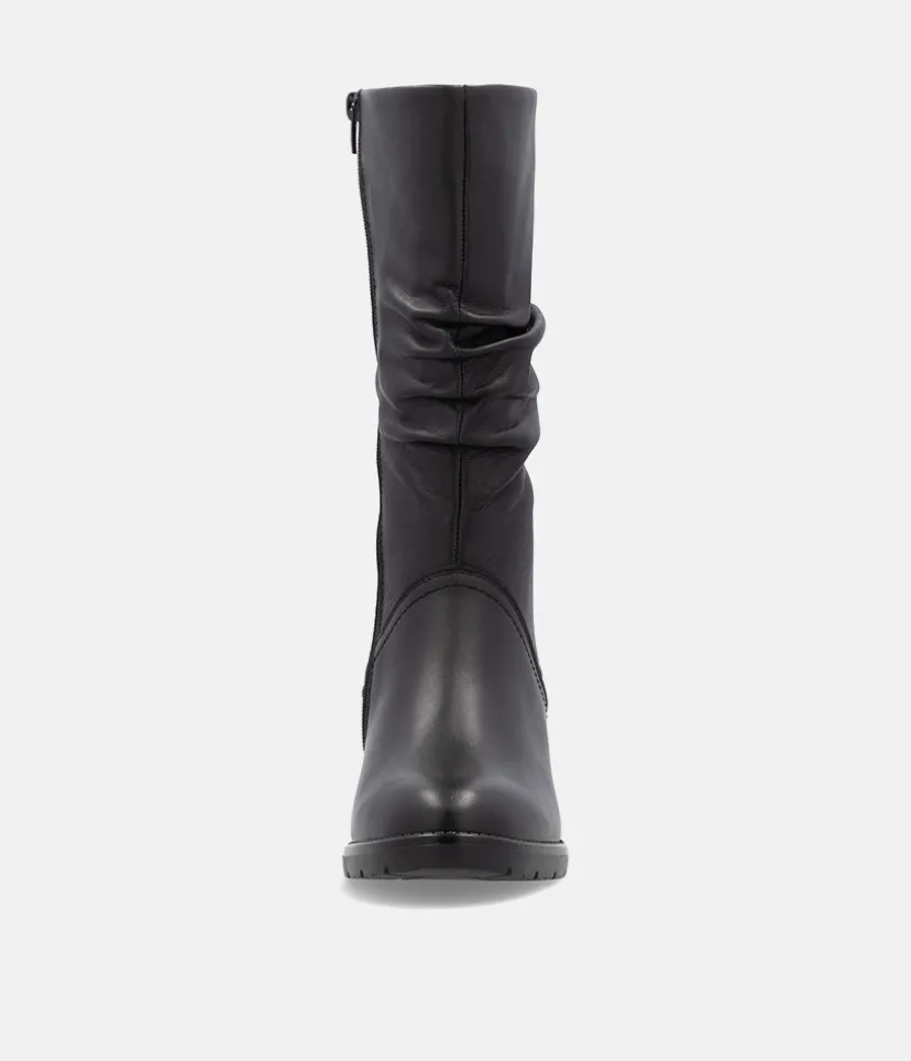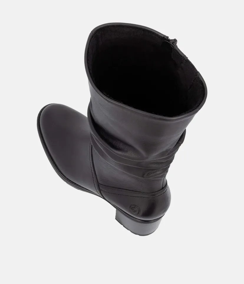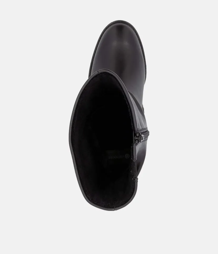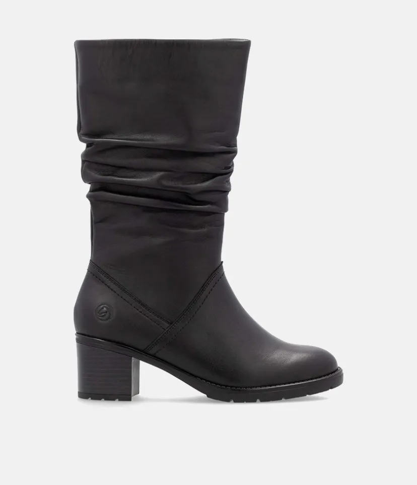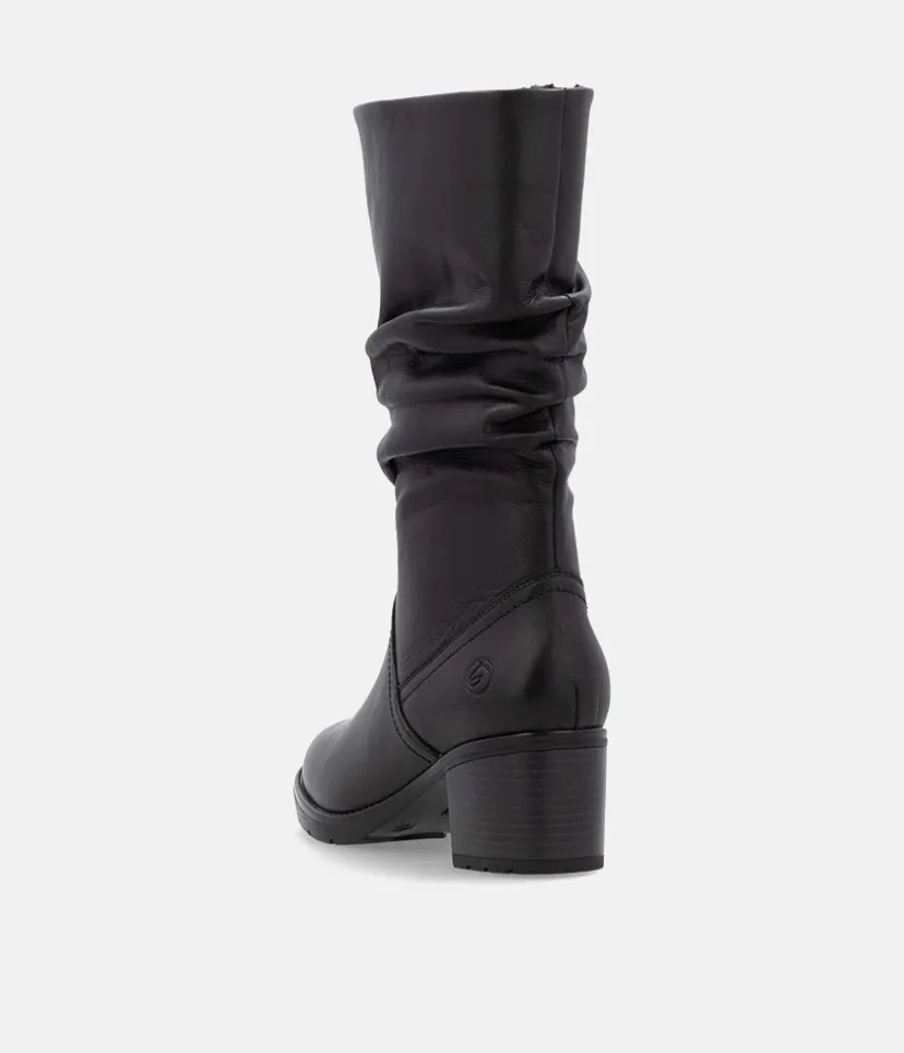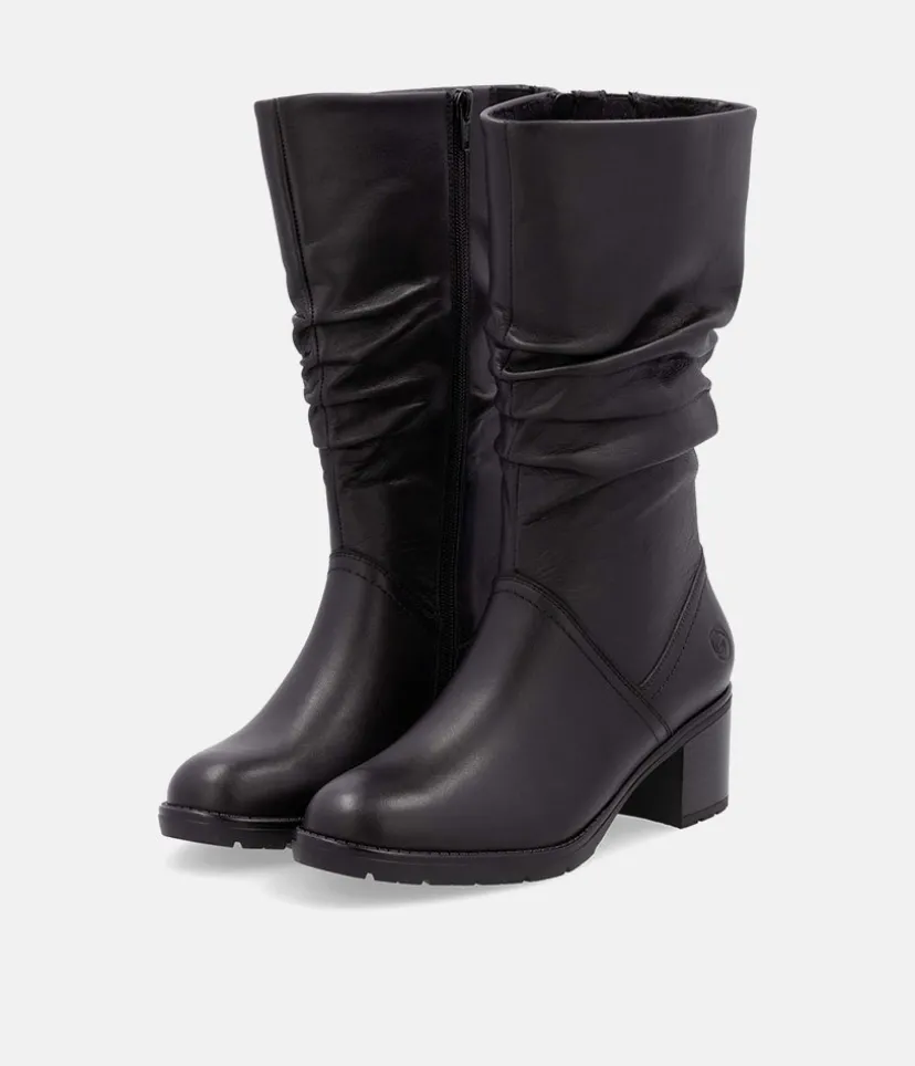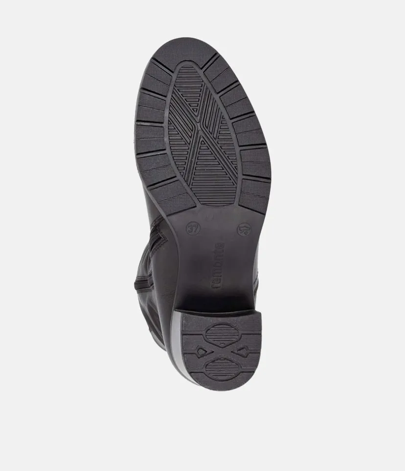 This is a Fabulous new style ankle boot from Remonte in classic Black leather. Both stylish and versatile, heeled ankle boots are the perfect partner for any of your autumn or winter looks! This Classic Black boot has an almond shaped toe and rests on a practical block heel. Perfect for day to evening wear.