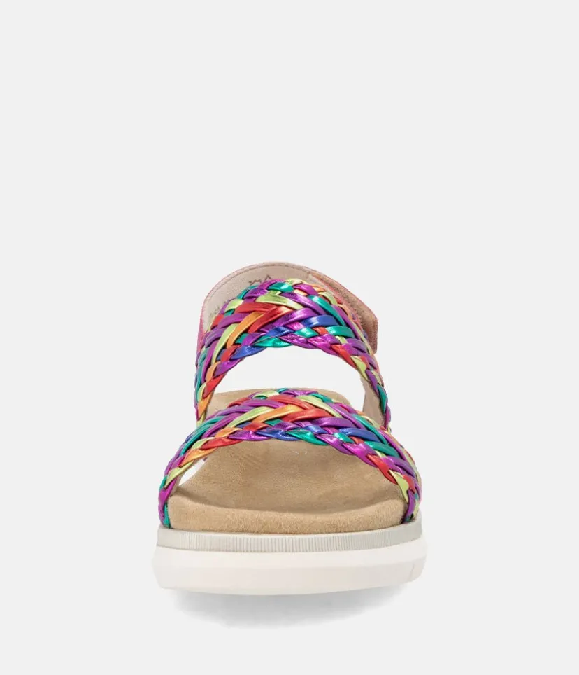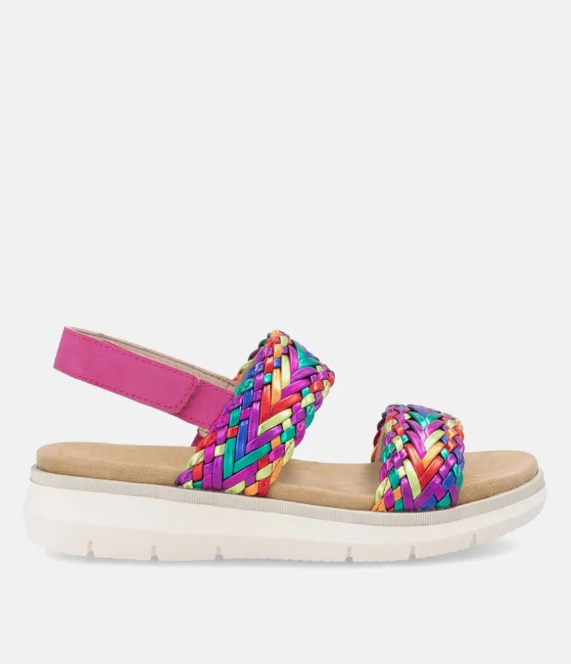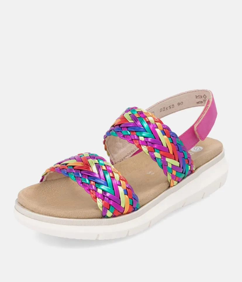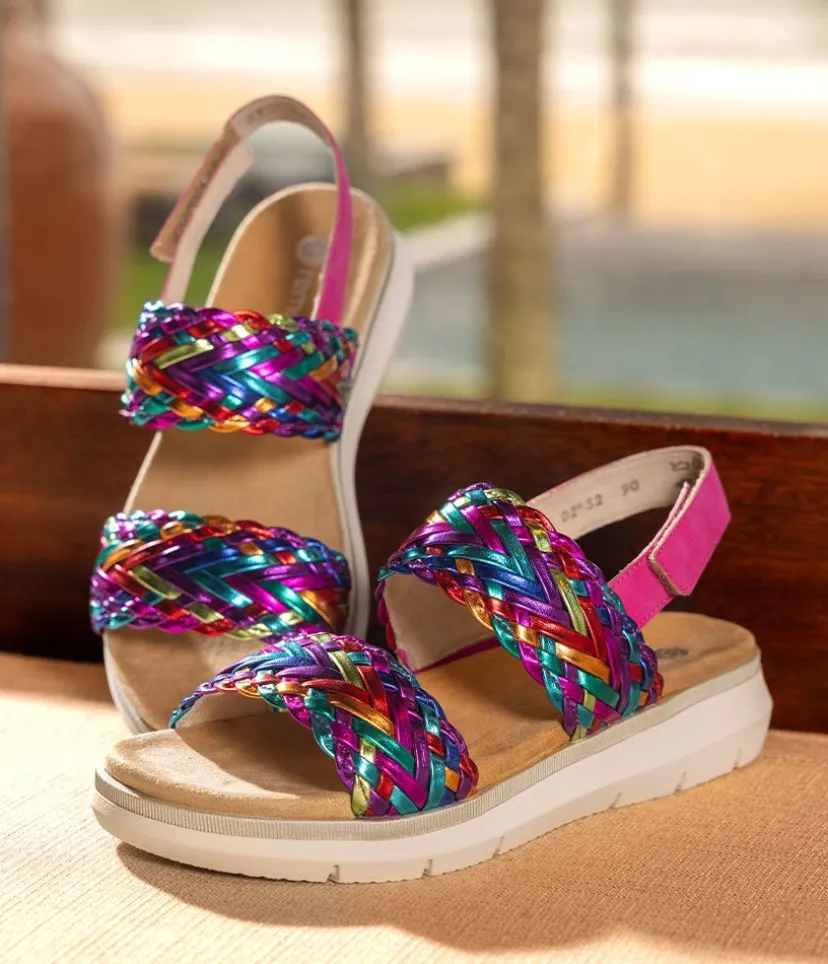 This is a Fabulous New Sandal from Remonte and features a Slingback strap and an adjustable velcro strap for a customizable fit. Feauturing a beautiful metallic print design sitting atop a platform sole, and a shock-absorbent footbed to keep your feet comfortable and supported. Ideal to pack for a vacation to pair with just about any outfit from shorts to long dresses and Jeans.