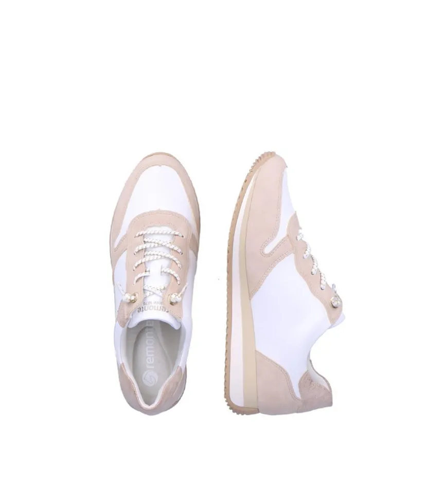 Remonte are right on trend with this classic ladies sneaker, ideal for the summer months. With a mix of leather and textile upper in Pink and white in a paneled style. Lined in a mix of leather and textile with a cushioned removable insole.