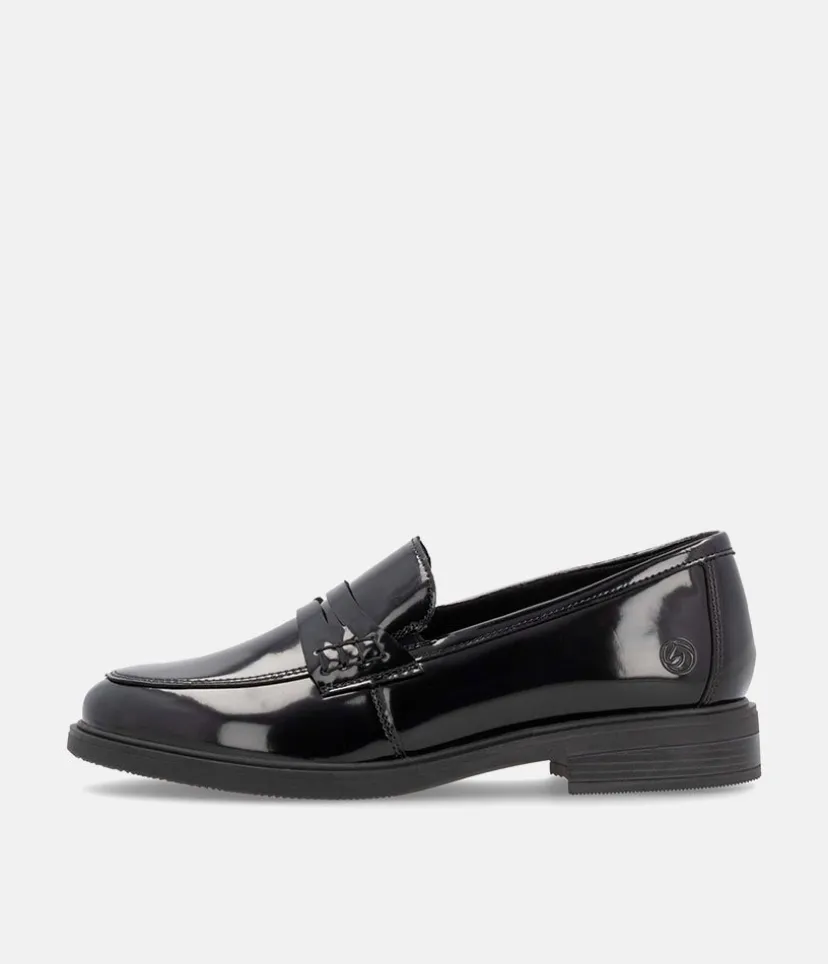 These shiny patent leather loafers are a smart and stylish choice. Slip-on style, with a secure heel tab and a shock-resistant footbed for all-day comfort. This is a classic easy-to-wear wardrobe staple from Remonte.